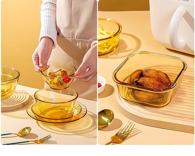 Venta al por mayor, freidora de aire, recipiente para hornear, horno, bandeja para hornear, resistente a altas temperaturas, queso, arroz horneado, utensilios para el hogar, microondas, vidrio