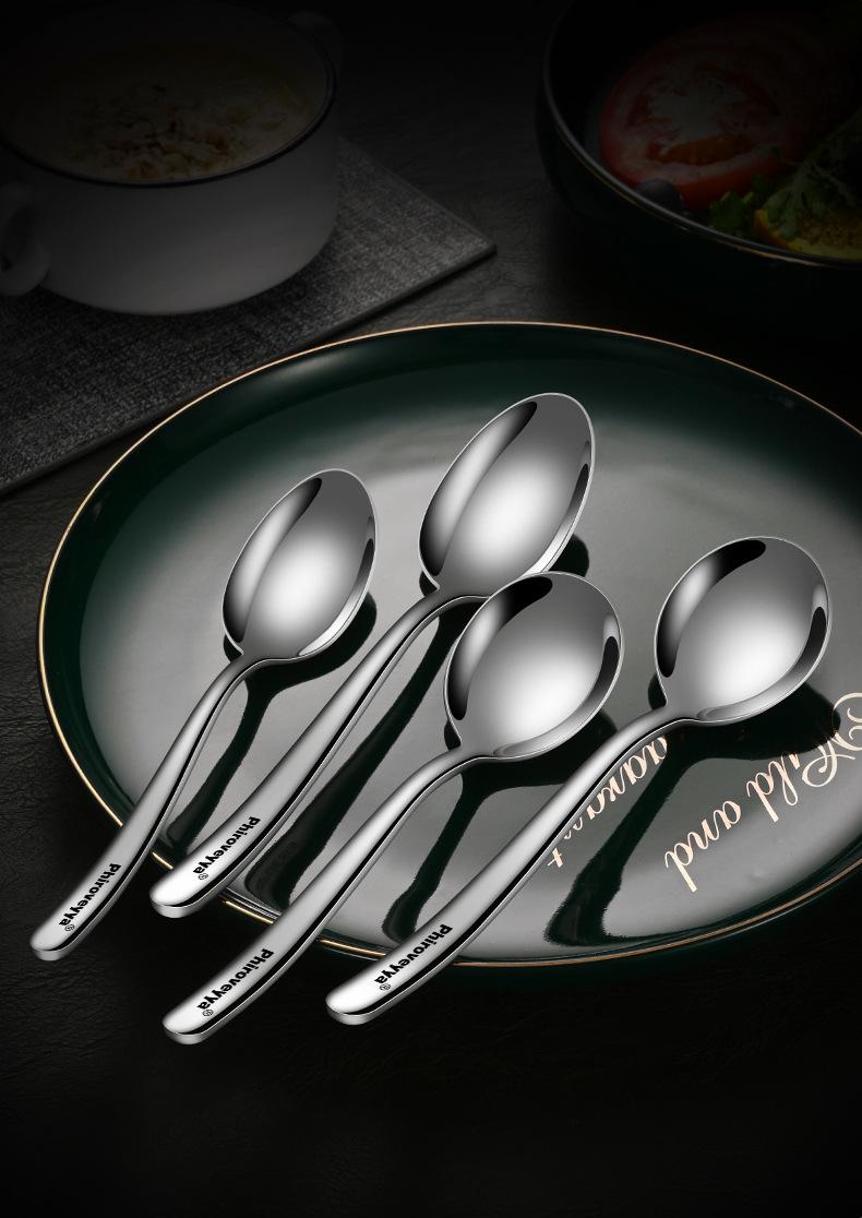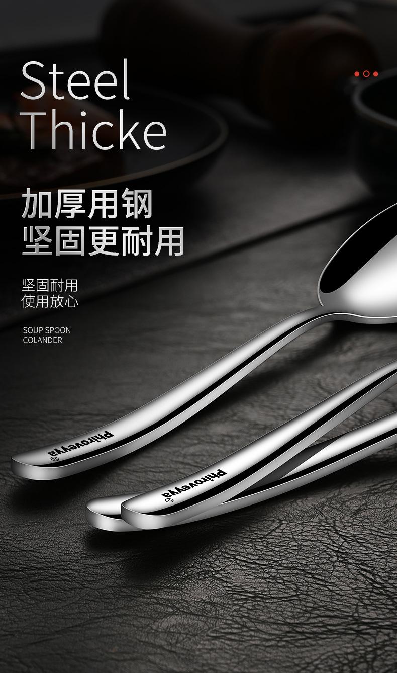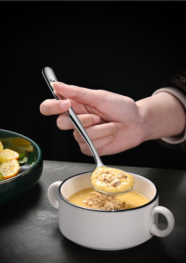 Cuchara de mango largo de acero inoxidable 304 engrosada, cuchara occidental, cuchara de sopa de grado alimenticio para el hogar