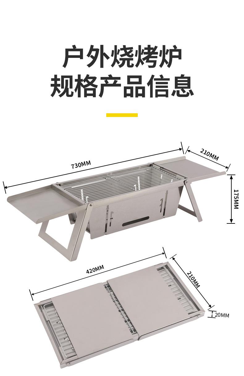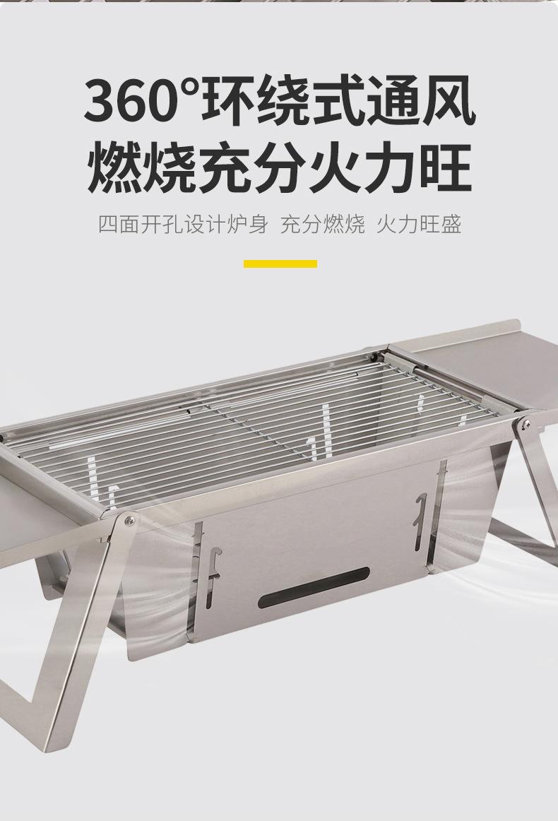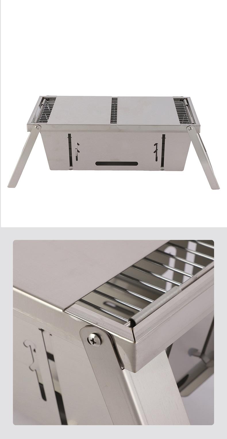 Parrilla de Barbacoa Portátil para Exterior de Acero Inoxidable Parrilla de Barbacoa Plegable Estilo Hogar Camping Patio Parrilla de Carbón Versión Elevada