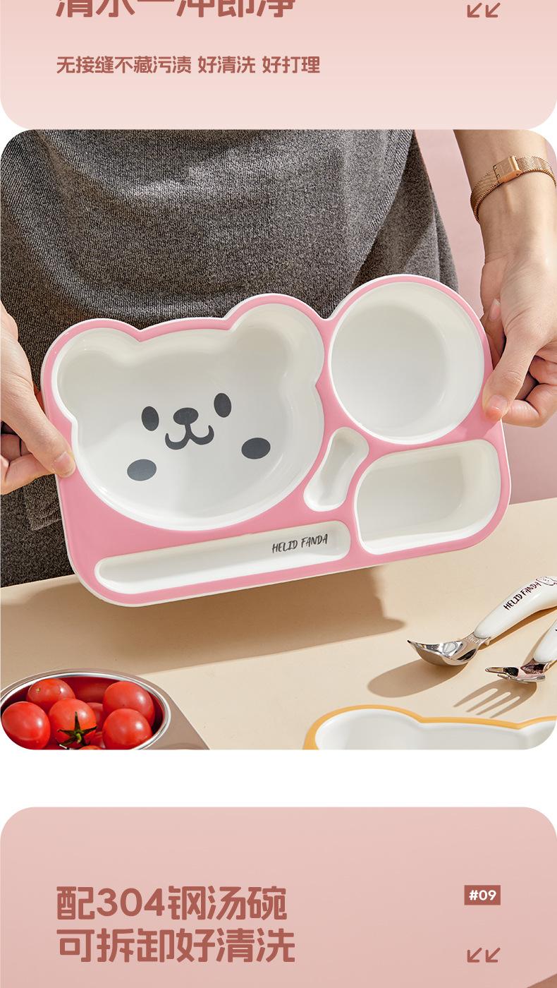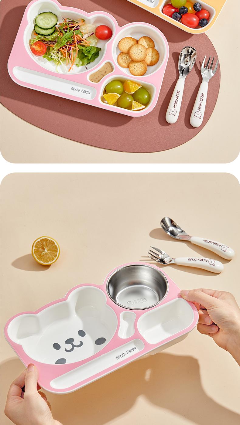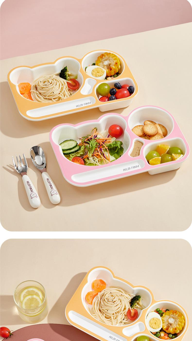 Plato de Cena Familiar de Oso Hogar Aprendizaje y Comida para Niños Vajilla Complementaria para Alimentos Grado Alimenticio Lindo Oso Dividido Anticaída Plato de Cena