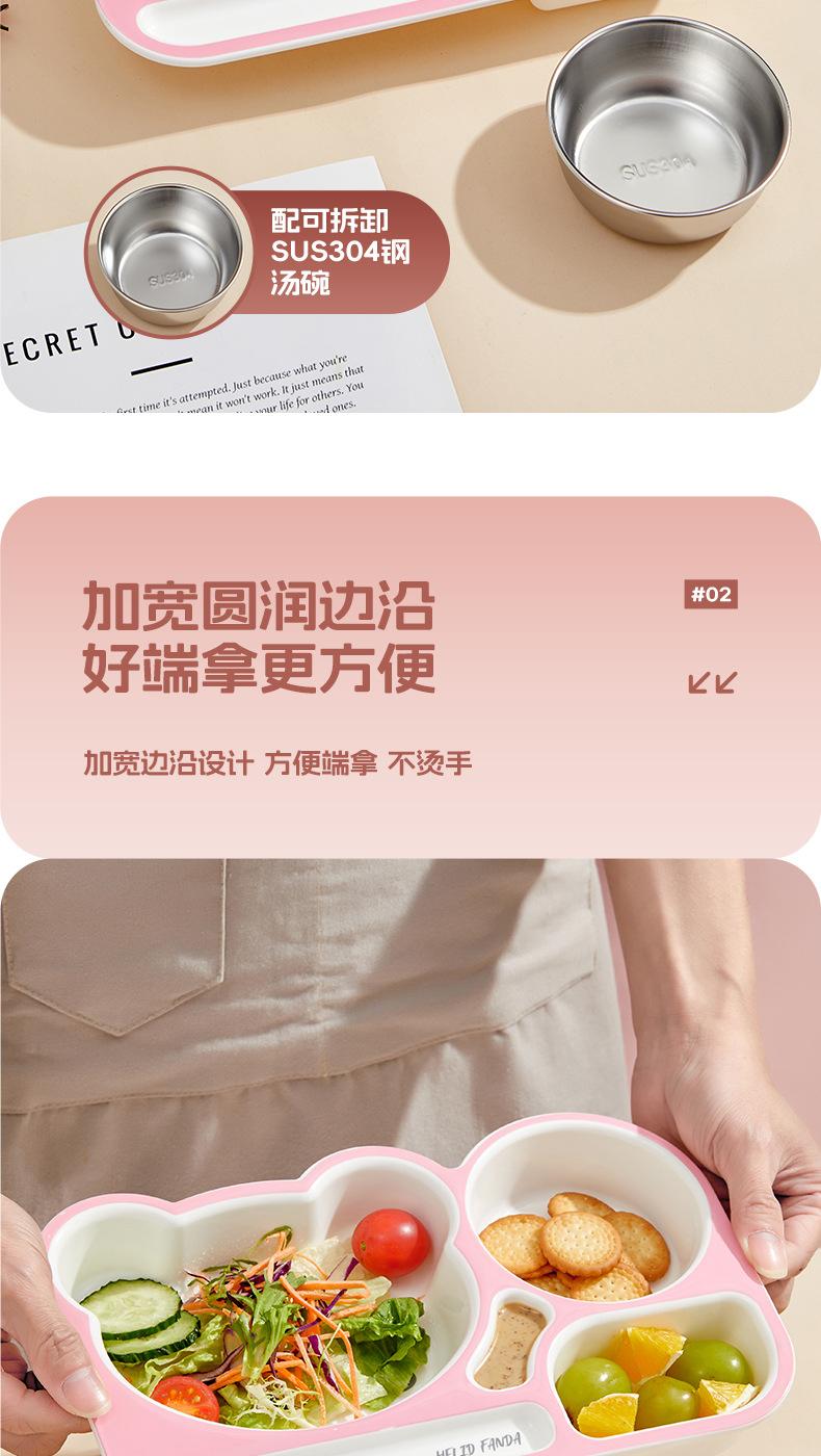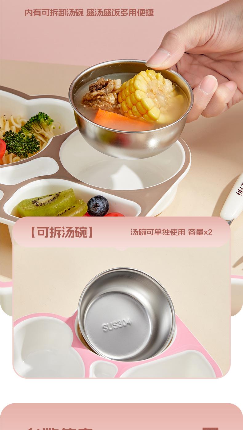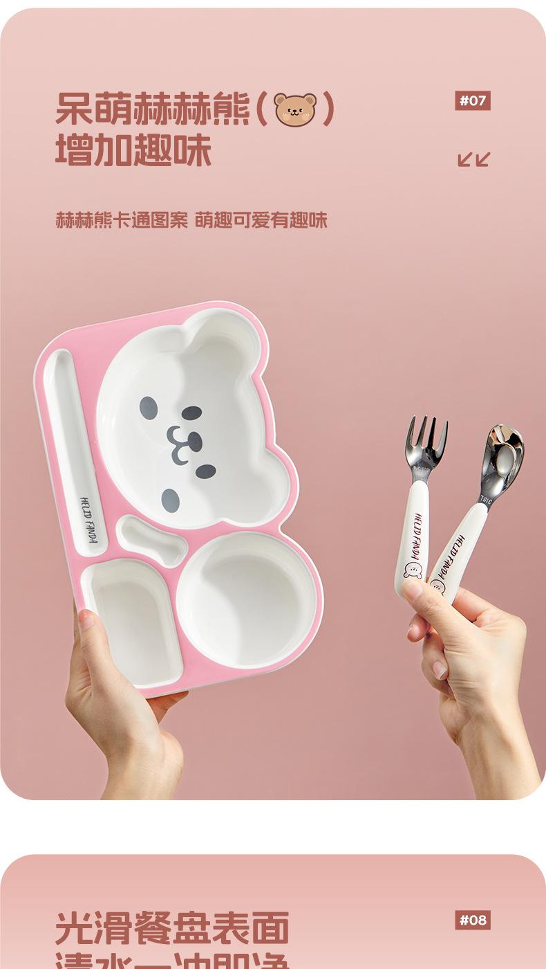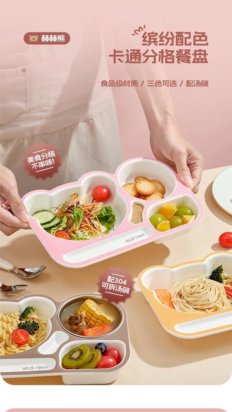 Plato de Cena Familiar de Oso Hogar Aprendizaje y Comida para Niños Vajilla Complementaria para Alimentos Grado Alimenticio Lindo Oso Dividido Anticaída Plato de Cena