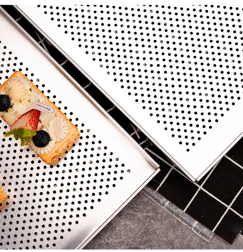 Molde rectangular de aluminio de aleación de ángulo recto liso para hornear 40x 30 contacto con alimentos galleta perforación rectangular ángulo recto dobladillo horneado