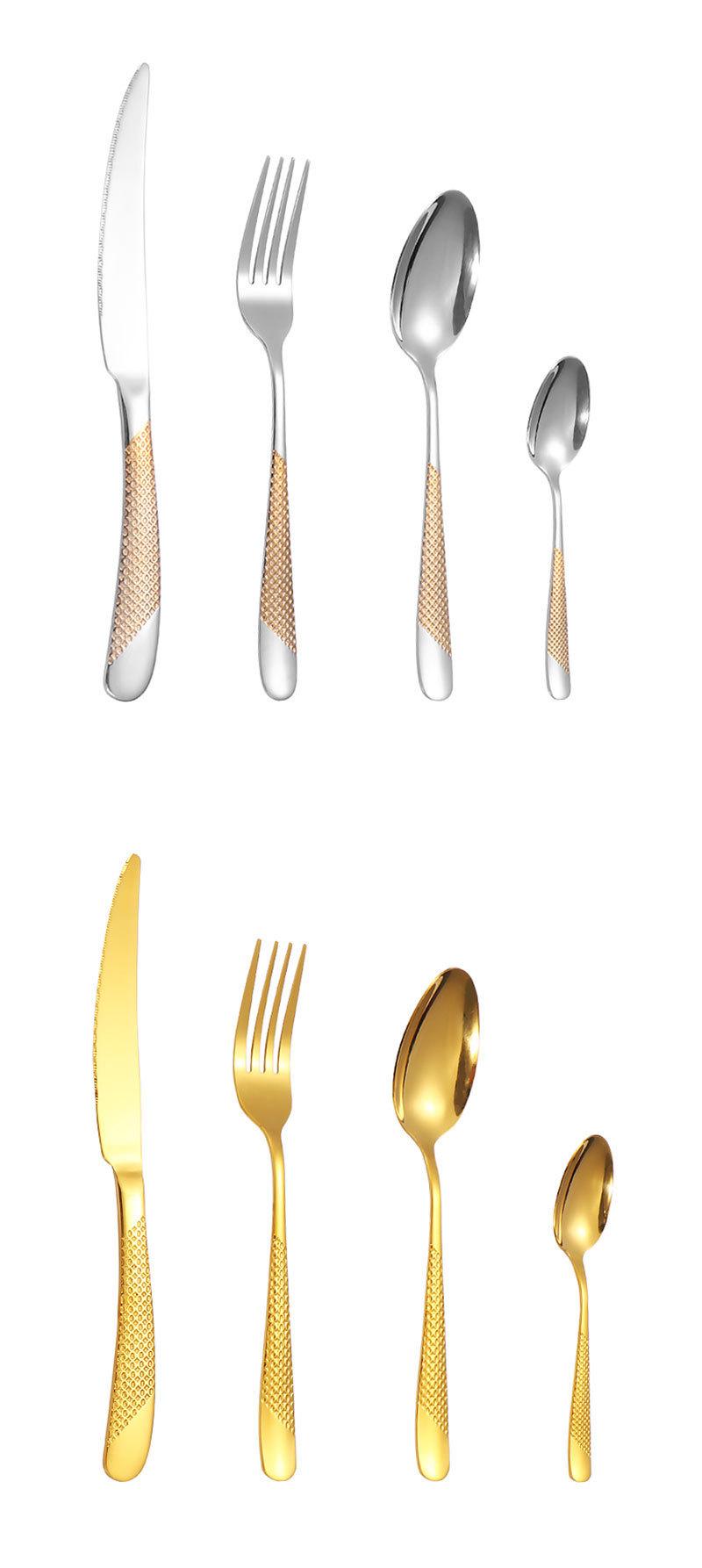Vajilla occidental de acero inoxidable, muy vendida en Amazon, con cuchillo, tenedor y cuchara, para hotel, chapada en oro, 4 o 5 piezas, ideal como regalo.