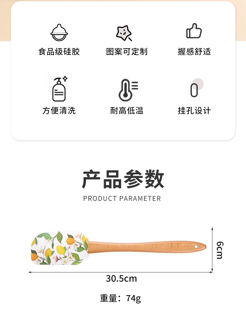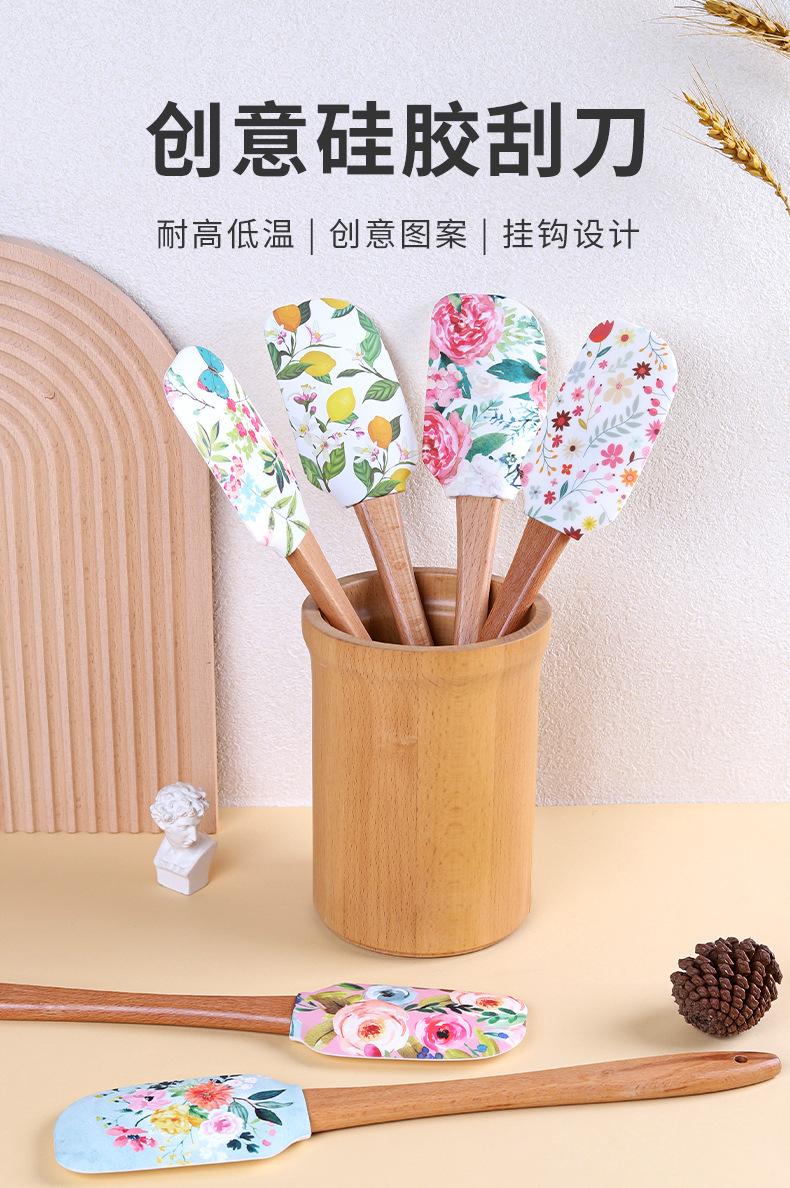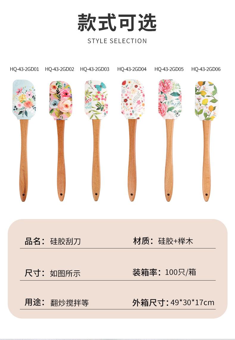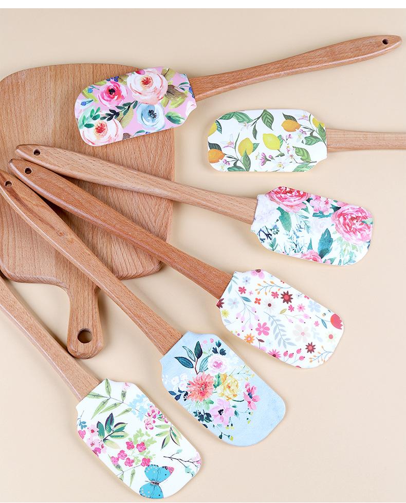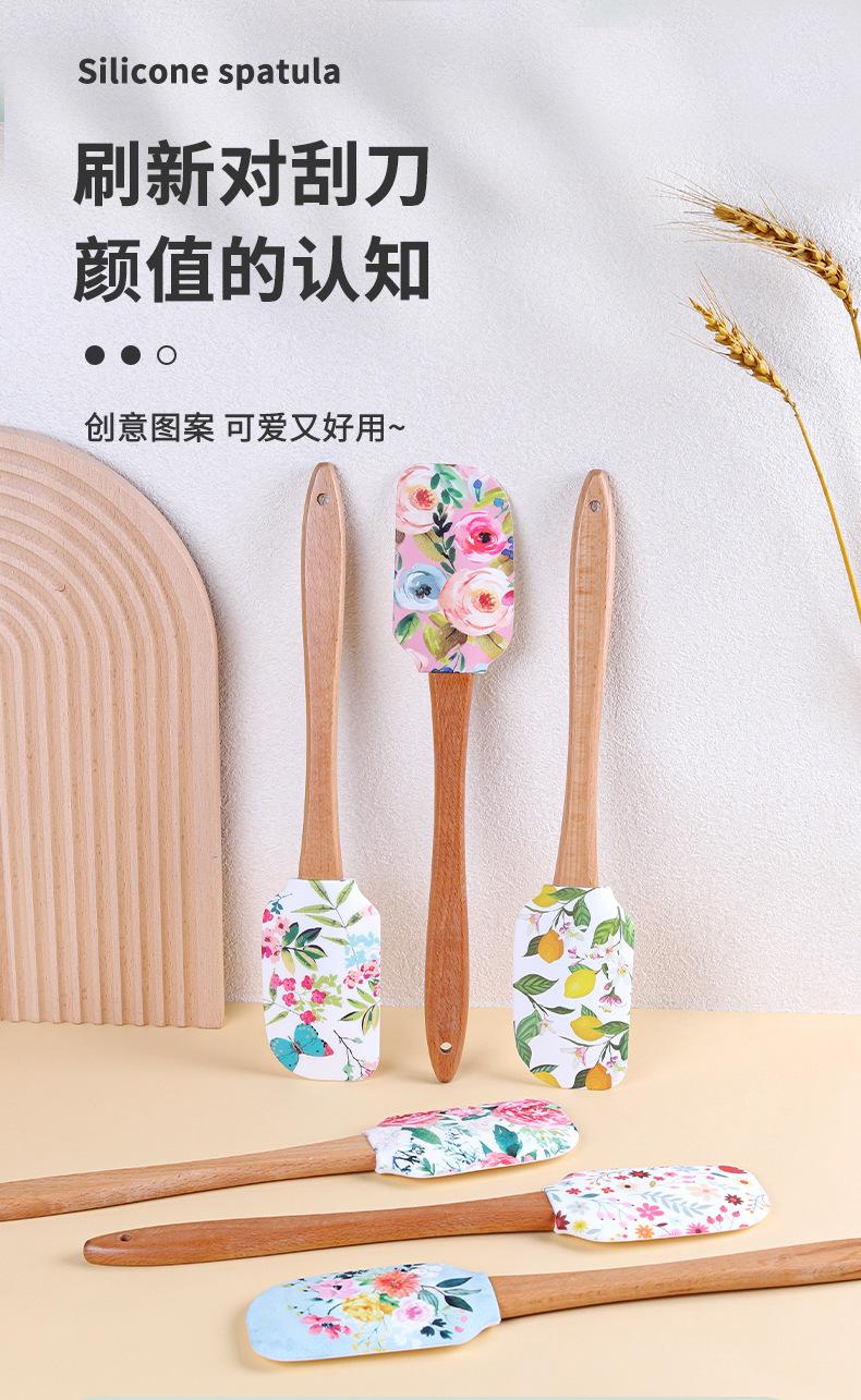 Espátula creativa de silicona para crema de pasteles con mango de madera dividido de 43 g, para cocina doméstica, venta al por mayor de fábrica