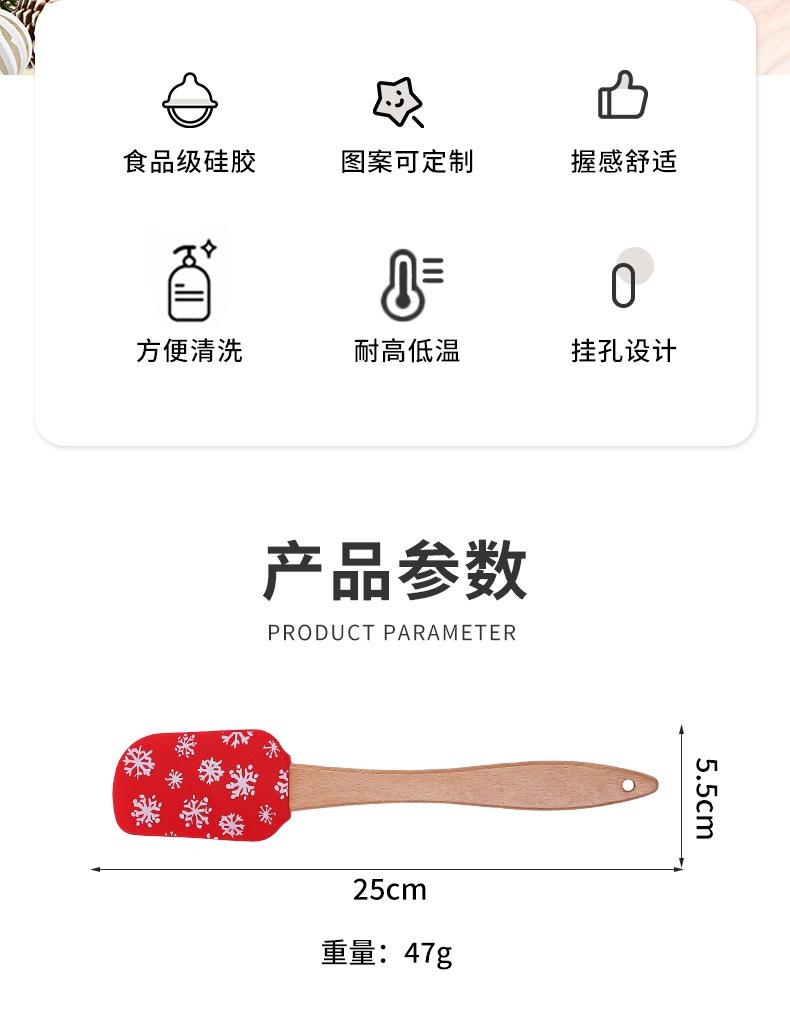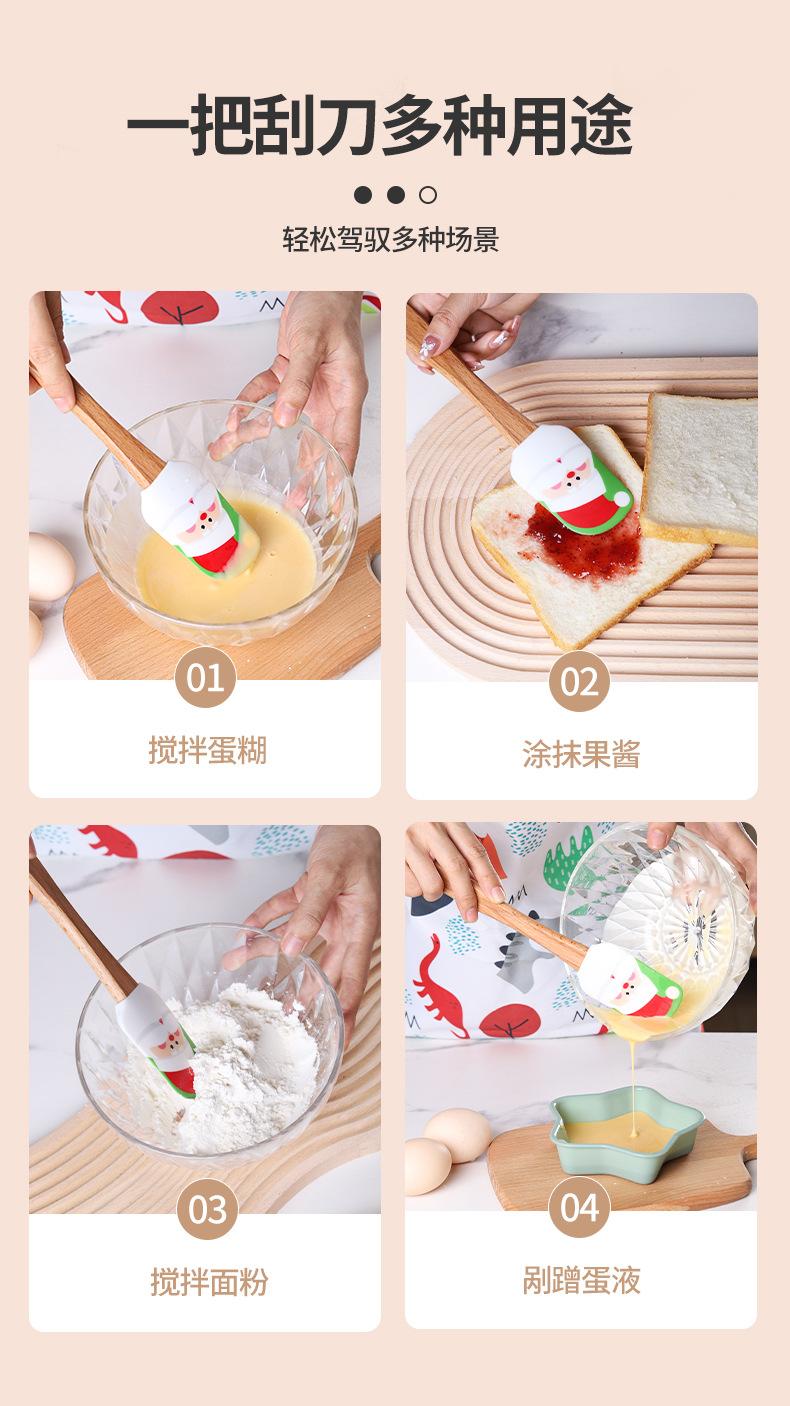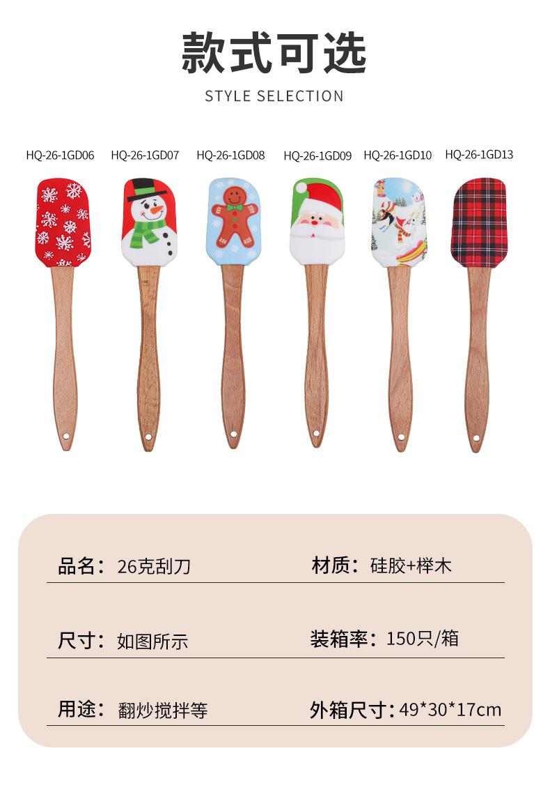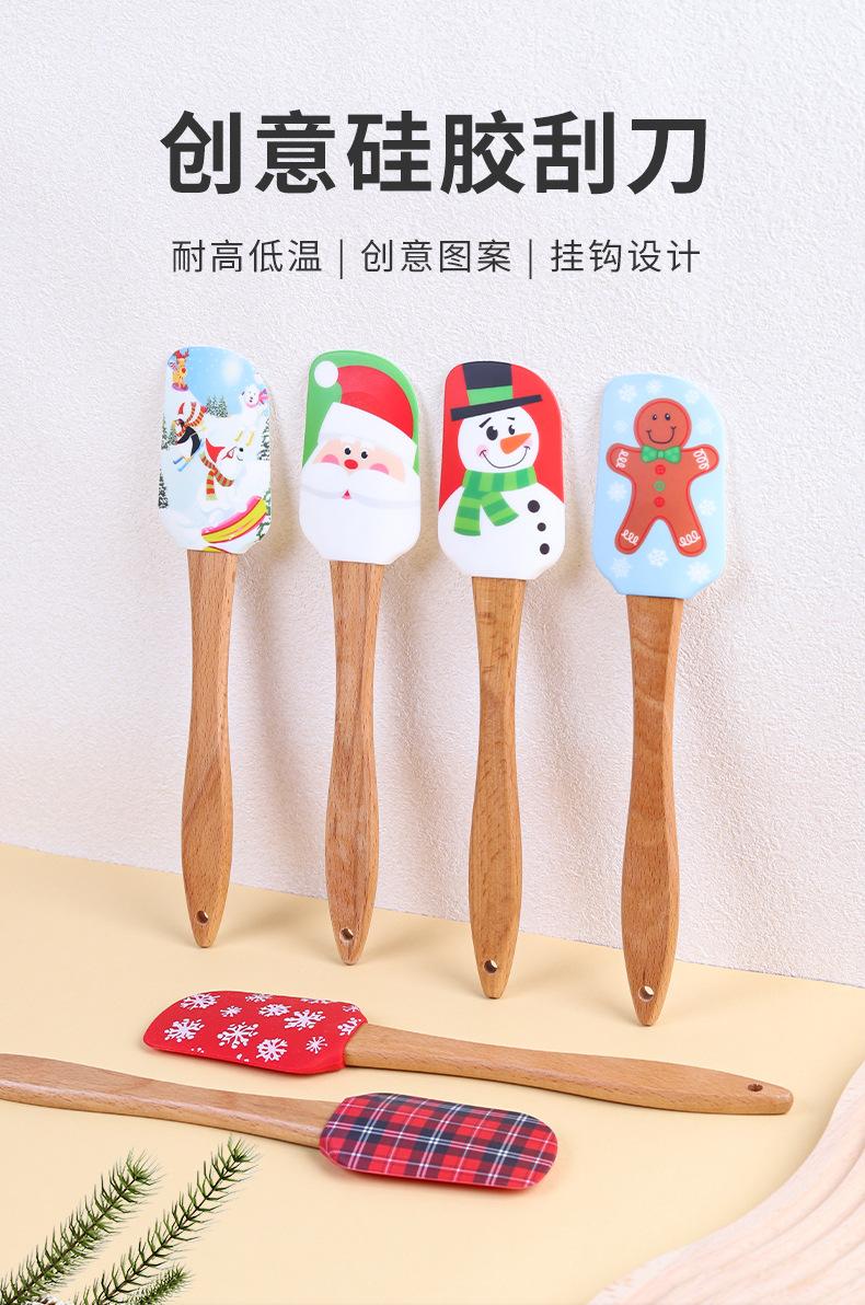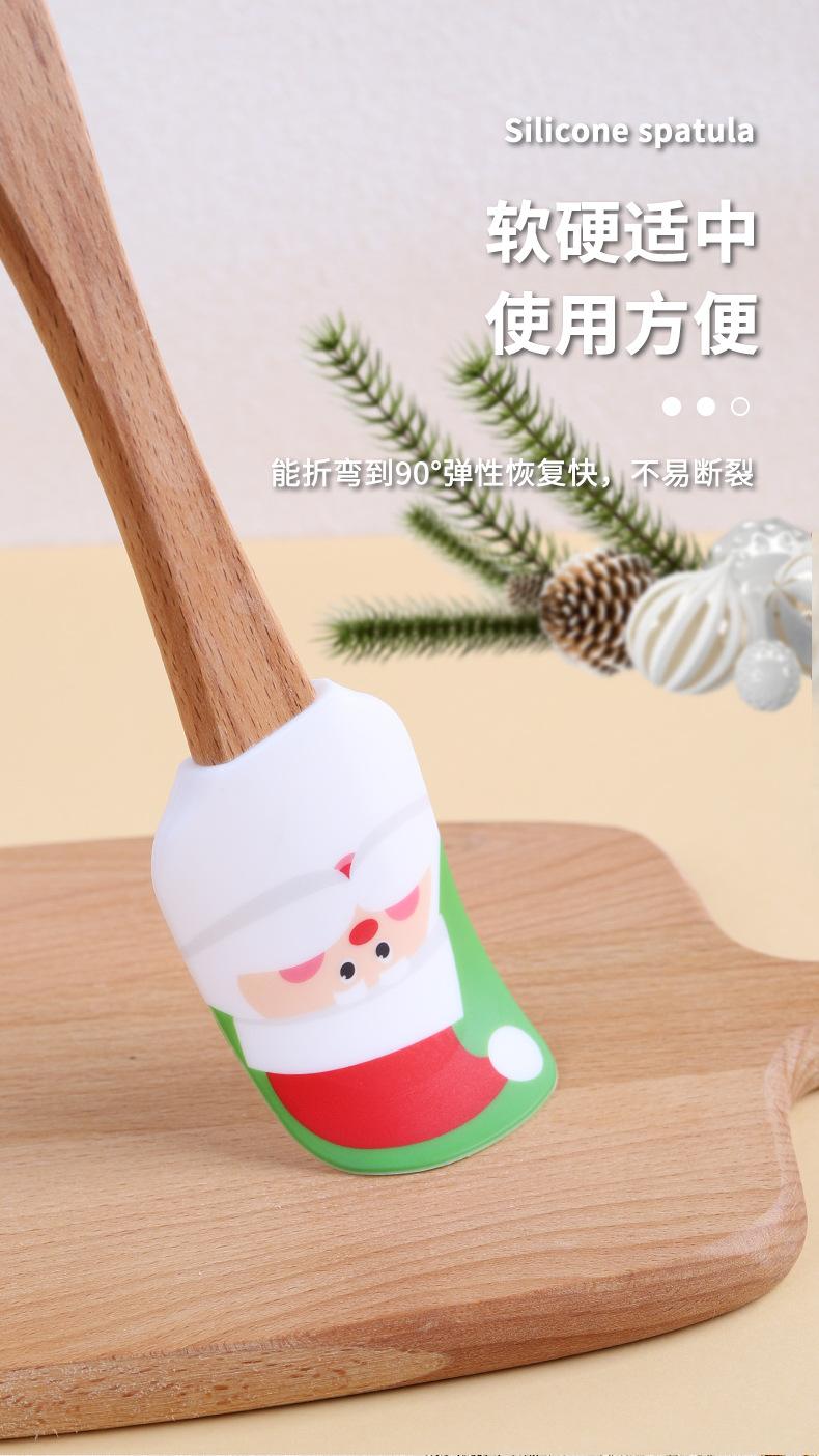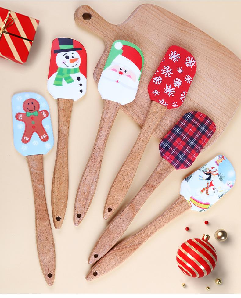 Raspador de Silicona Transfronterizo de Amazon Mango de Madera Espátula para Crema Raspador Navideño Cuchillo Mezclador de Mantequilla Raspador para Hornear