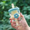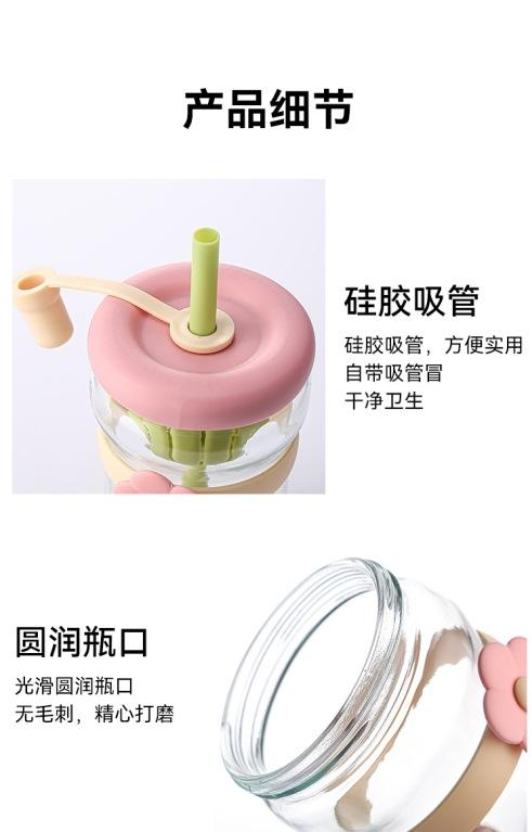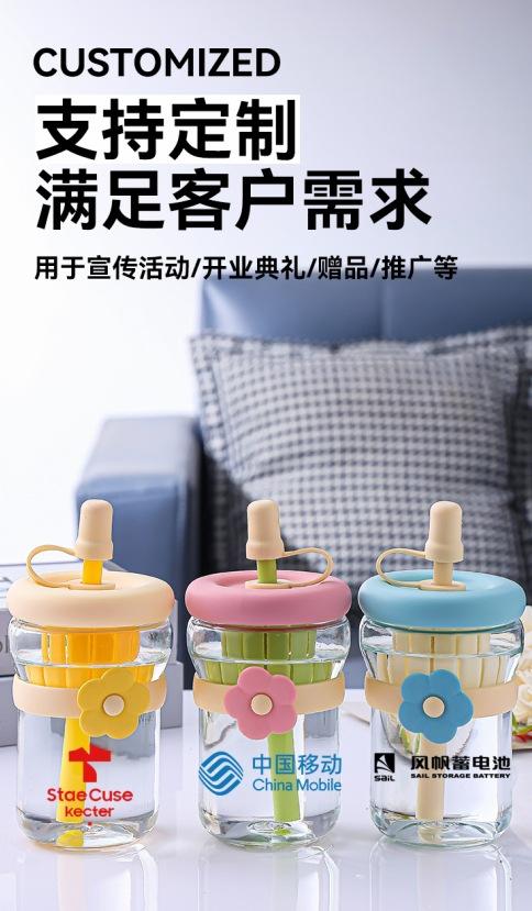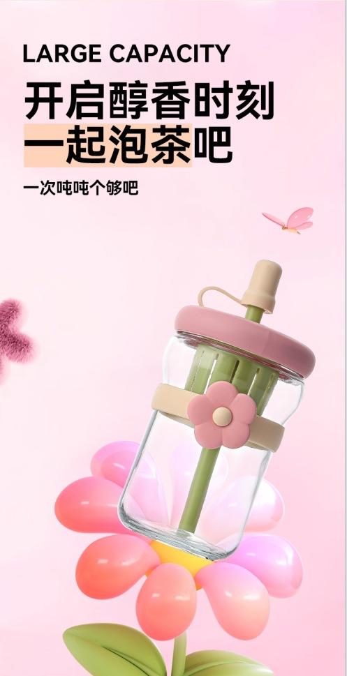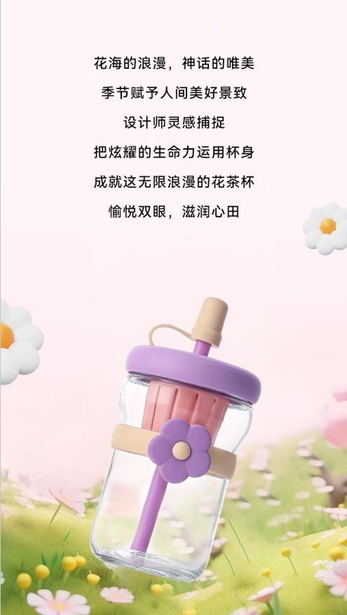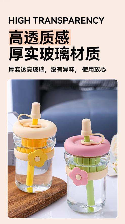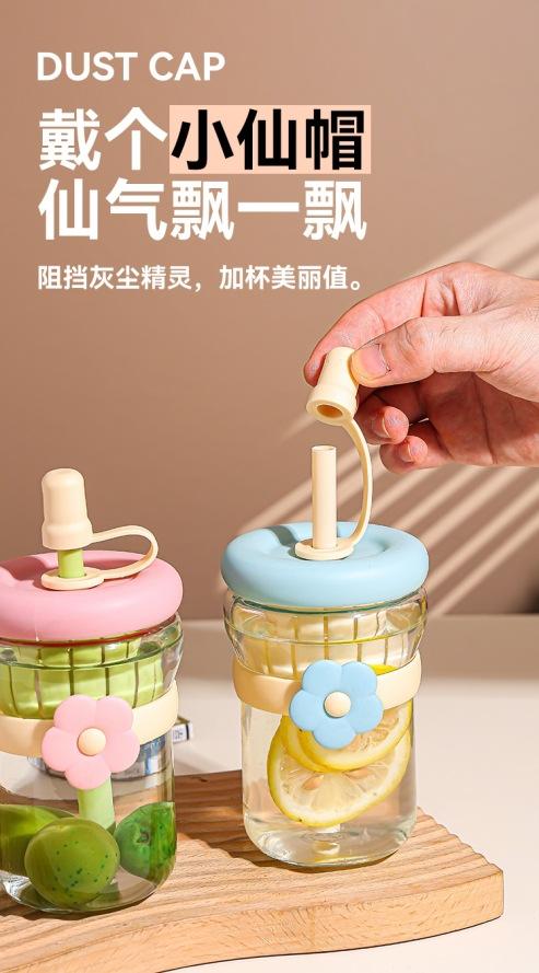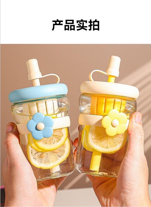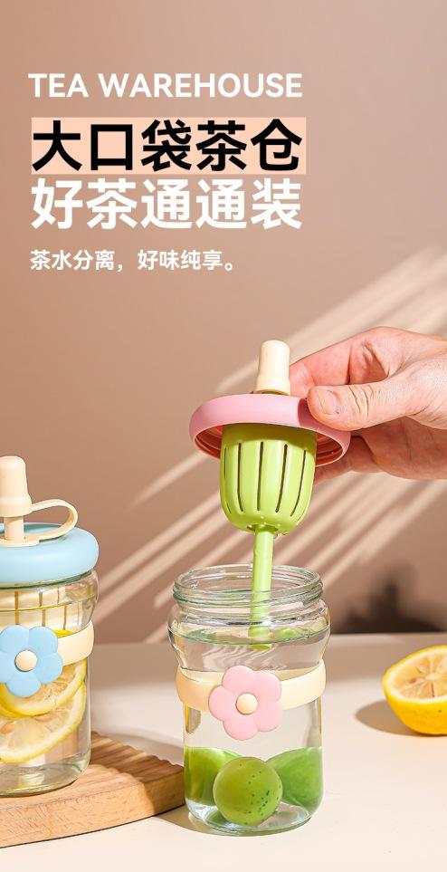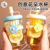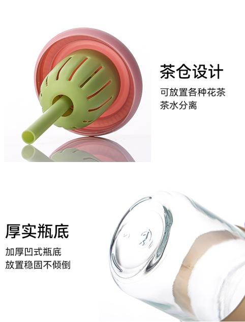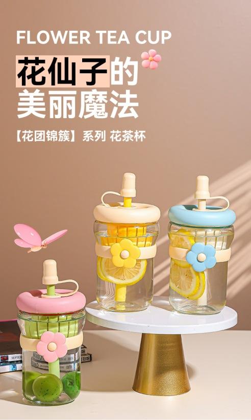 Nuevo Lindo Vaso de Vidrio Macaron con Popote Vaso Portátil con Separación de Té y Agua Vaso de Regalo Floral de Alta Gama