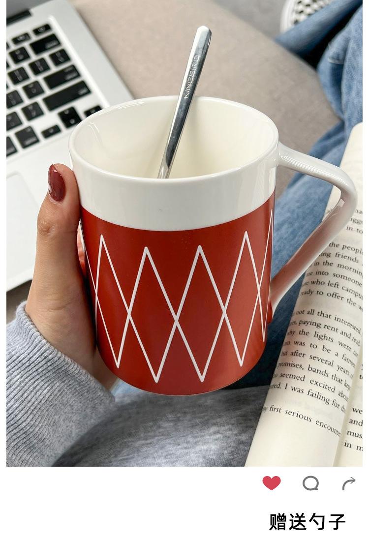 Taza de cerámica con tapa y cuchara, taza creativa de personalidad, taza de agua de oficina de moda, taza de café para el hogar para niña
