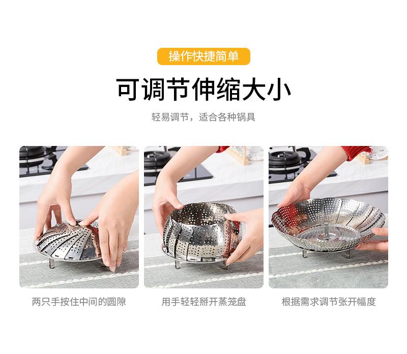 Venta al por mayor de vaporera de acero inoxidable engrosada, vaporera doméstica, bandeja de vapor plegable para cocina, cesta de frutas para vaporera