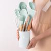 Pala de silicona con mango de madera, sartén antiadherente, utensilios de cocina, cuchara sopera de calidad alimentaria, pala para saltear, cuchara, utensilios de cocina resistentes a altas temperaturas.
