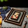 Bandeja de Té Pequeña de Madera Maciza al por Mayor Bandeja para Tazas, Frutas, Snacks Bandeja de Cristal Retro Flor de Begonia Bandeja de Té Zen Ceremonia del Té