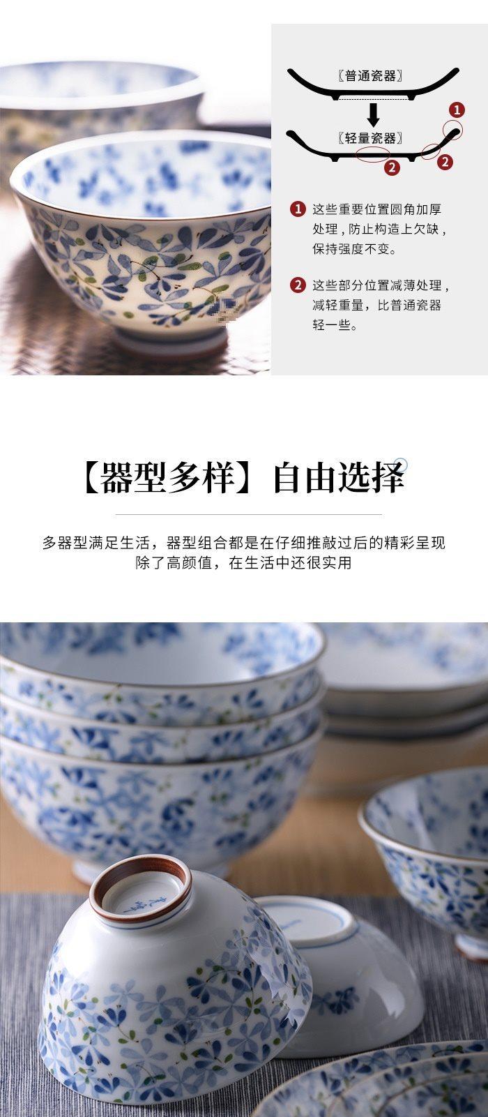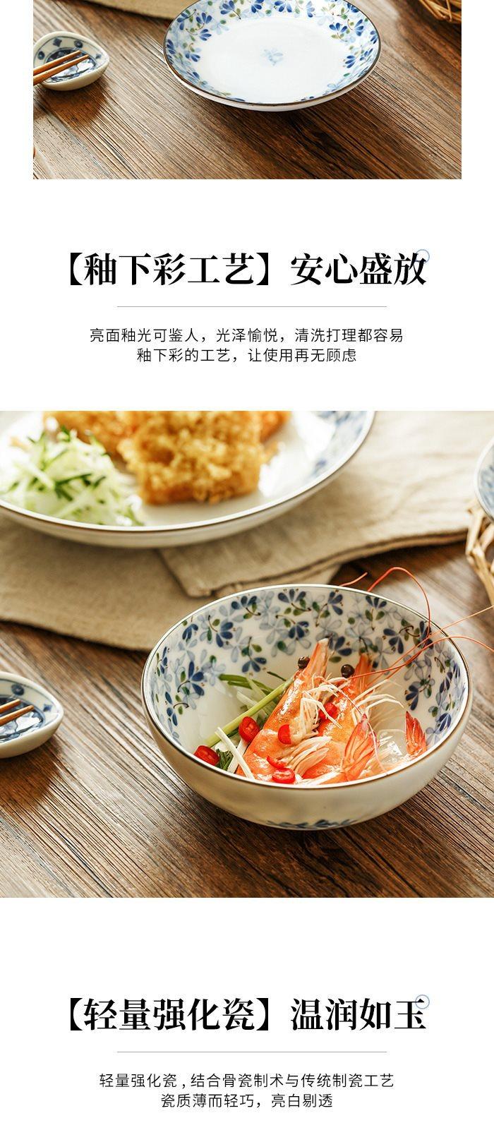 Serie Little Blue Bud Vajilla de Cerámica para el Hogar Plato Hondo al por Mayor Tazón de Arroz Estilo Japonés Tazón de Sopa Taza Color Bajo Esmalte
