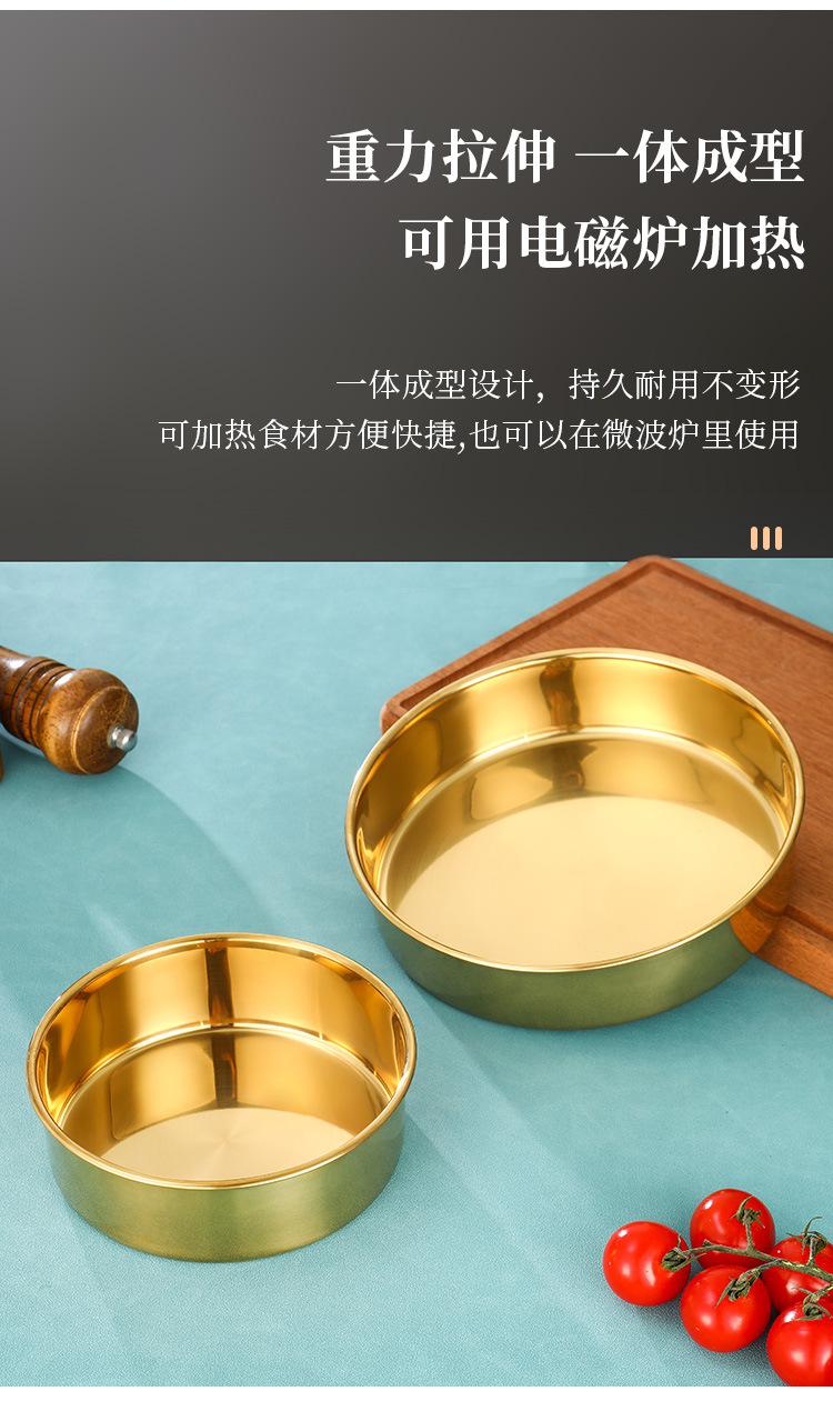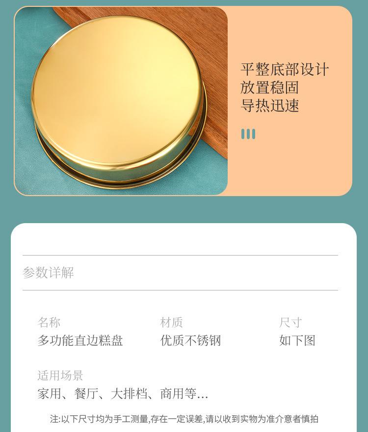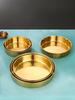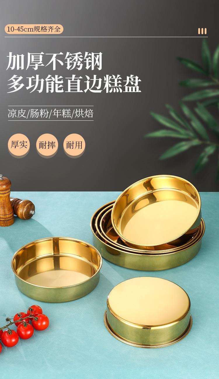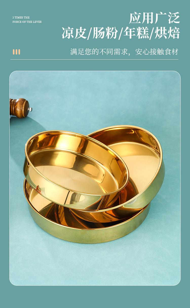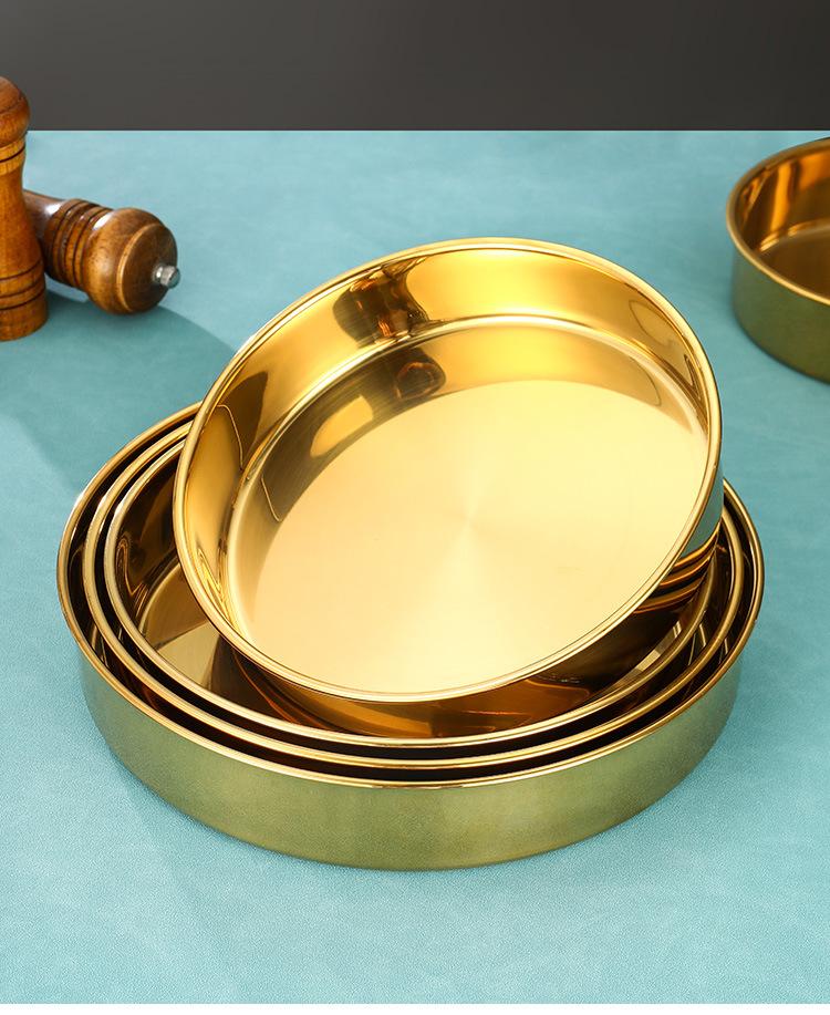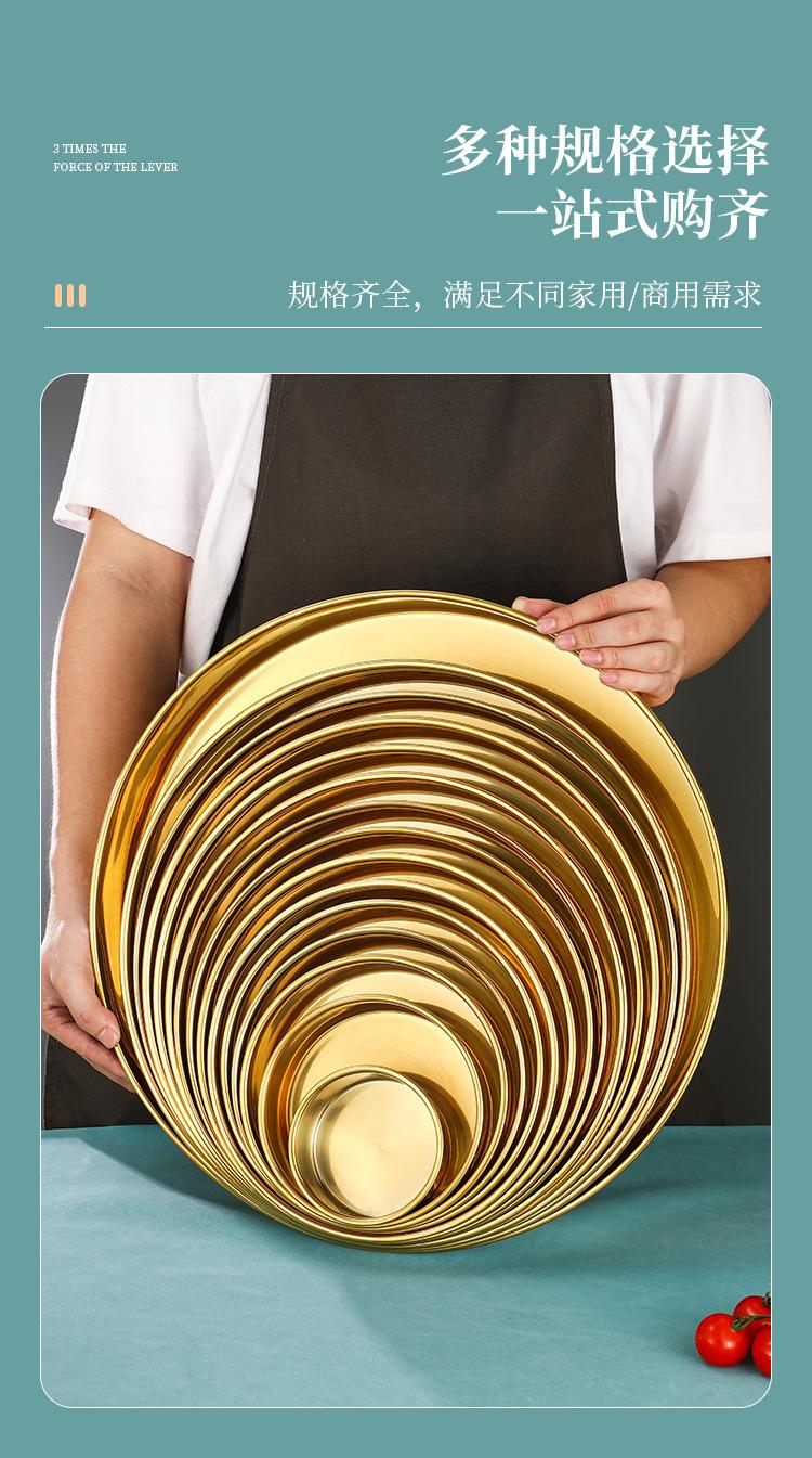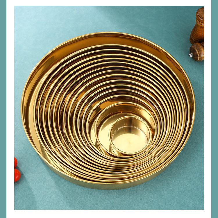 Plato grande de acero inoxidable dorado, redondo, de fondo plano, chapado en oro, plato para pastel, plato hondo grande, bandeja para taza, vajilla comercial