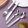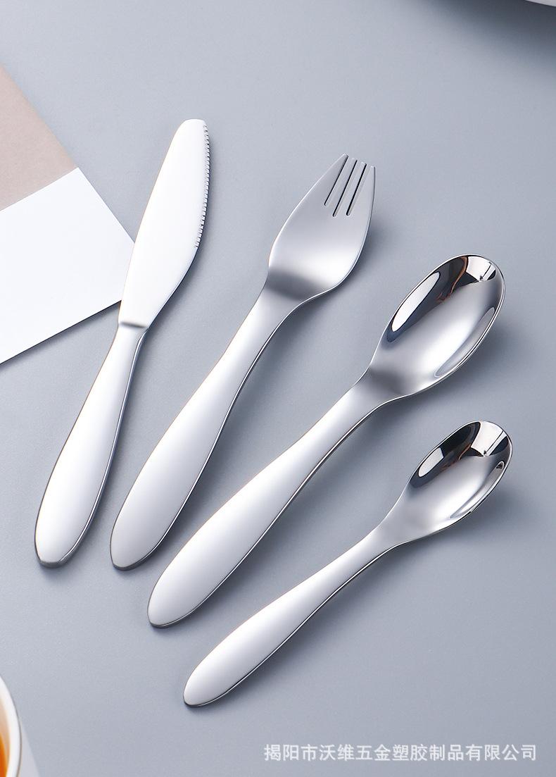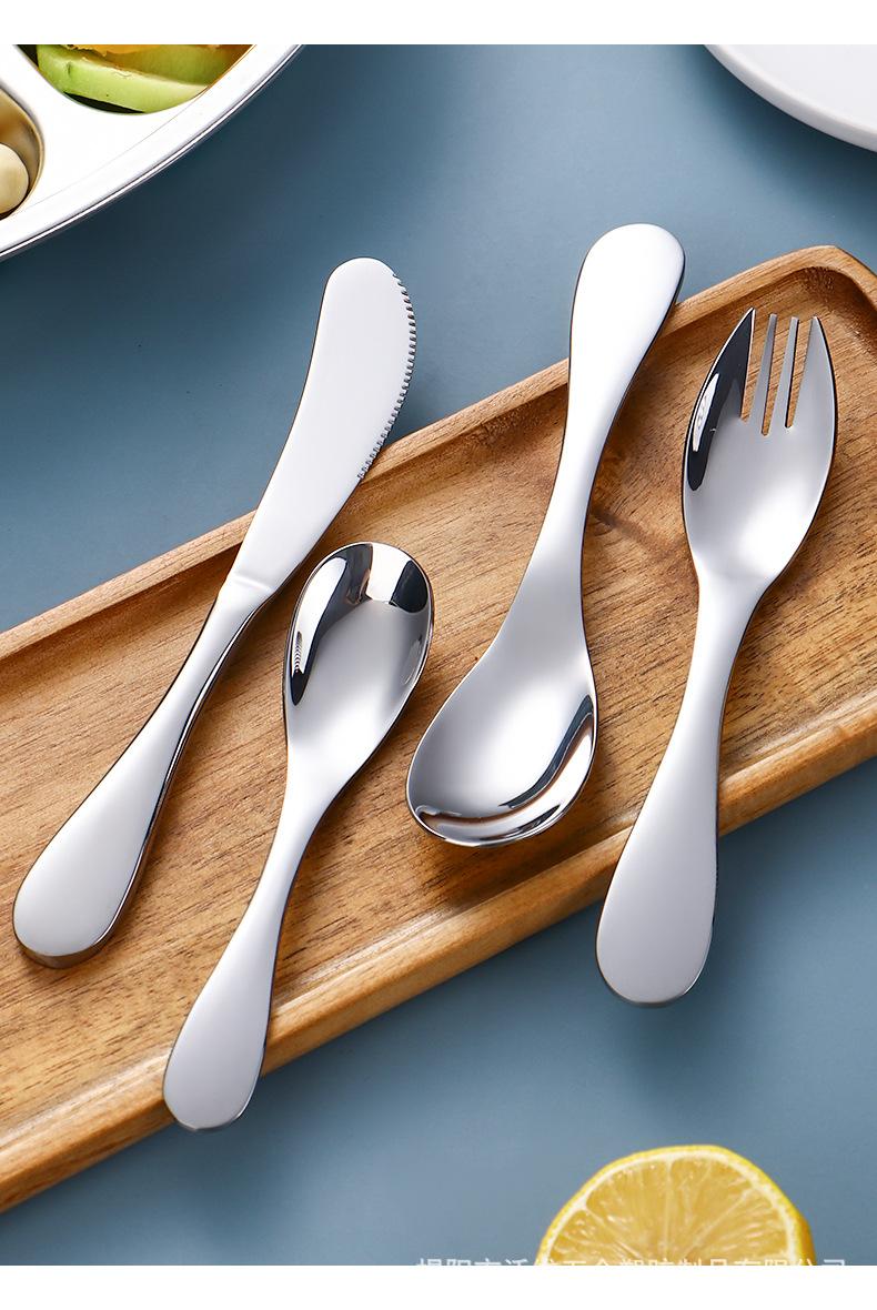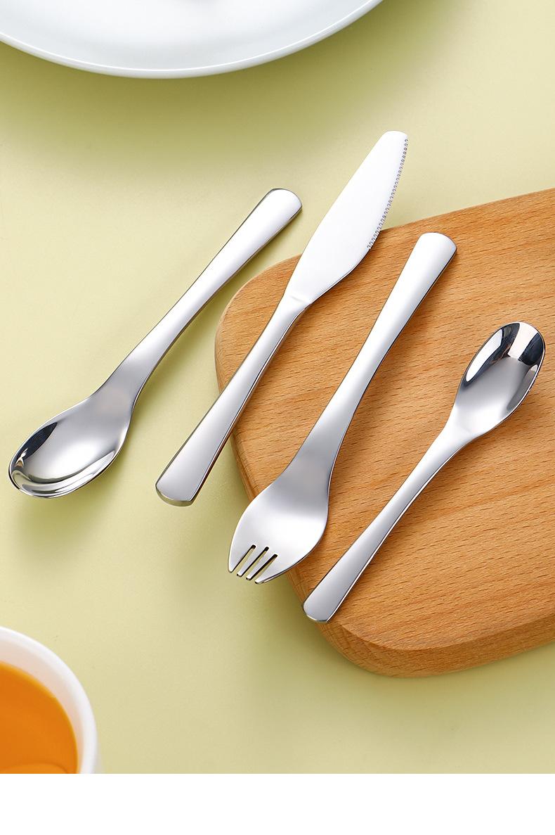 Juego de cubiertos de cuatro piezas para niños transfronterizo, cuchillo, tenedor y cuchara, acero inoxidable 430 creativo, cuchillo y tenedor para bistec de estilo occidental, cuchara para postre
