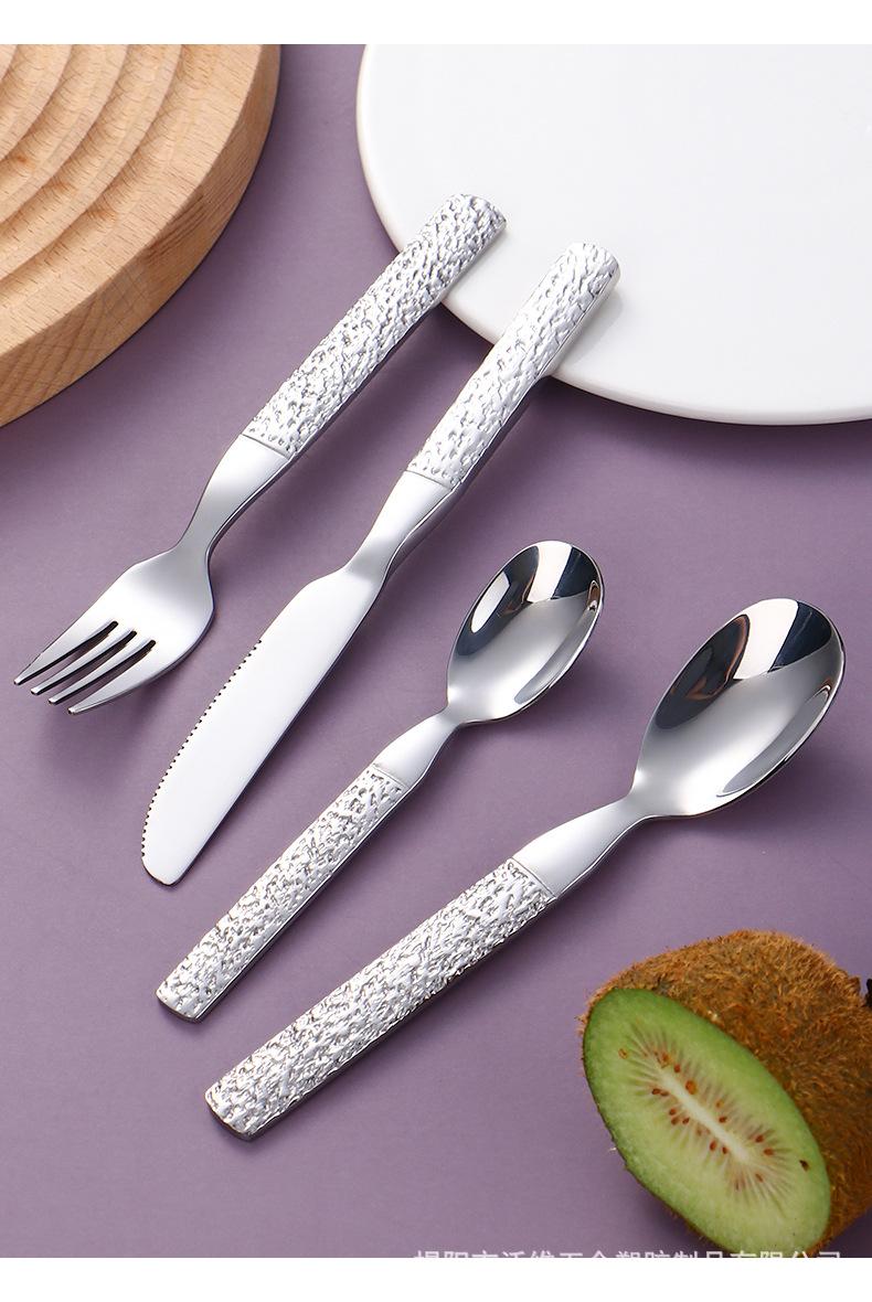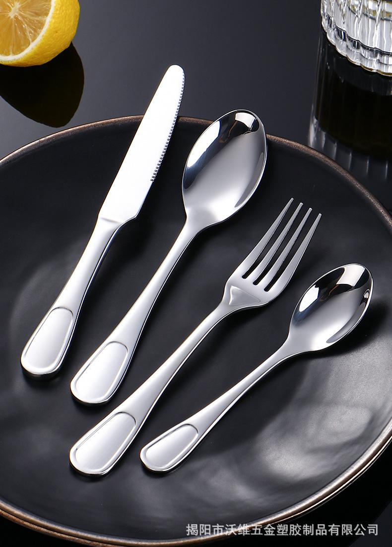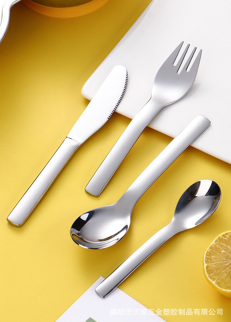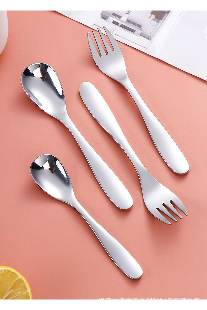 Juego de cubiertos de cuatro piezas para niños transfronterizo, cuchillo, tenedor y cuchara, acero inoxidable 430 creativo, cuchillo y tenedor para bistec de estilo occidental, cuchara para postre