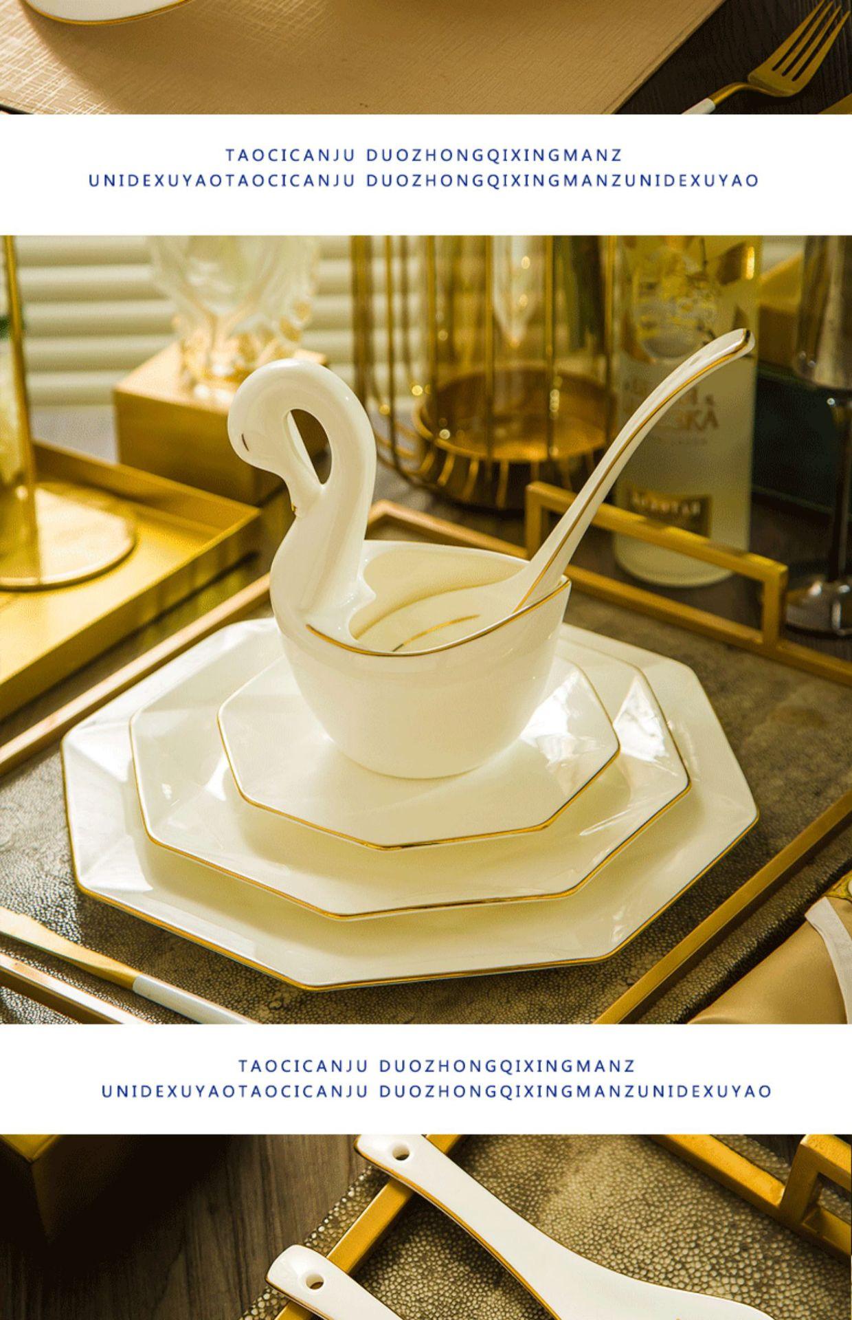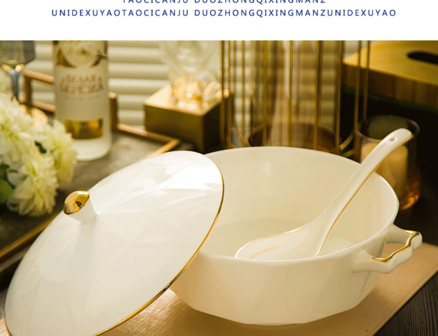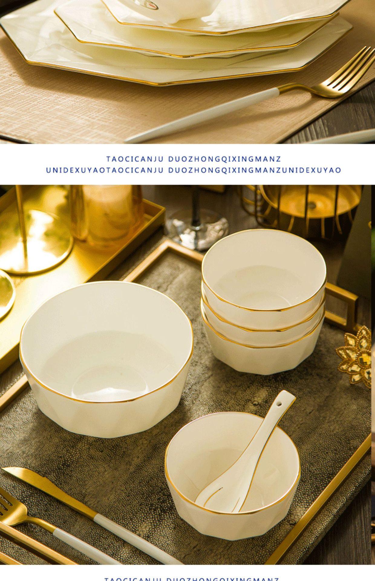 DIY Producto Único Porcelana Fina Tazón de Arroz Plato Cuchara Combinación Vajilla Lujo Estilo Europeo Cerámica Juego de Platos para el Hogar