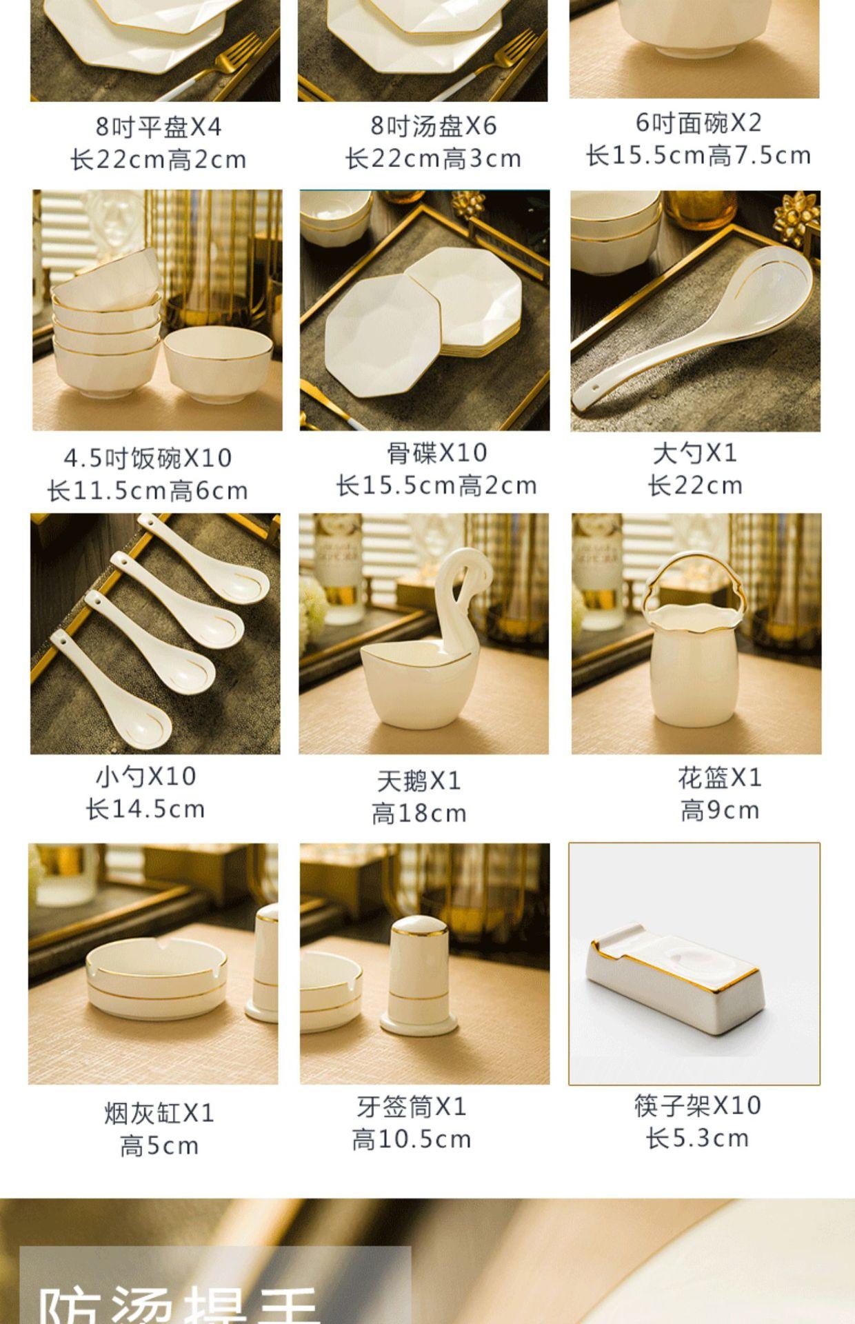 4.5inch rice bowl, 6inch floor bowl, 8inch soup tray, 8inch flat plate, 10inch flat plate, 12.8inch corner fis...
