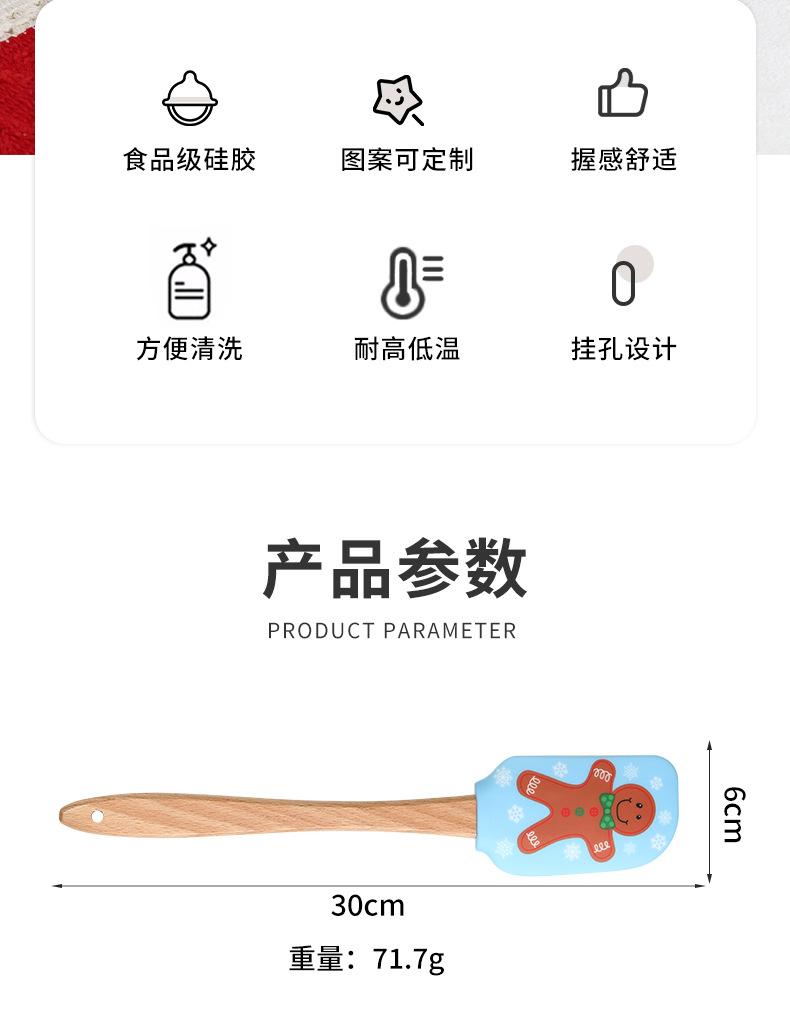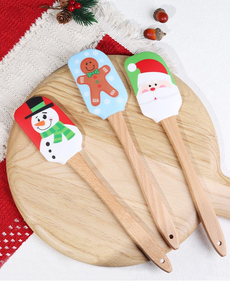 Espátula de Silicona Grande Navideña Más Vendida de Amazon Mango de Madera Espátula para Mantequilla Cuchillo para Mezclar Mantequilla Rascador para Hornear