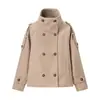 2025 Primavera Nuevo Europeo y Americano Transfronterizo para Mujer Simple Moda Doble Botonadura Casual Manga Larga Chaqueta Larga de Manga Larga