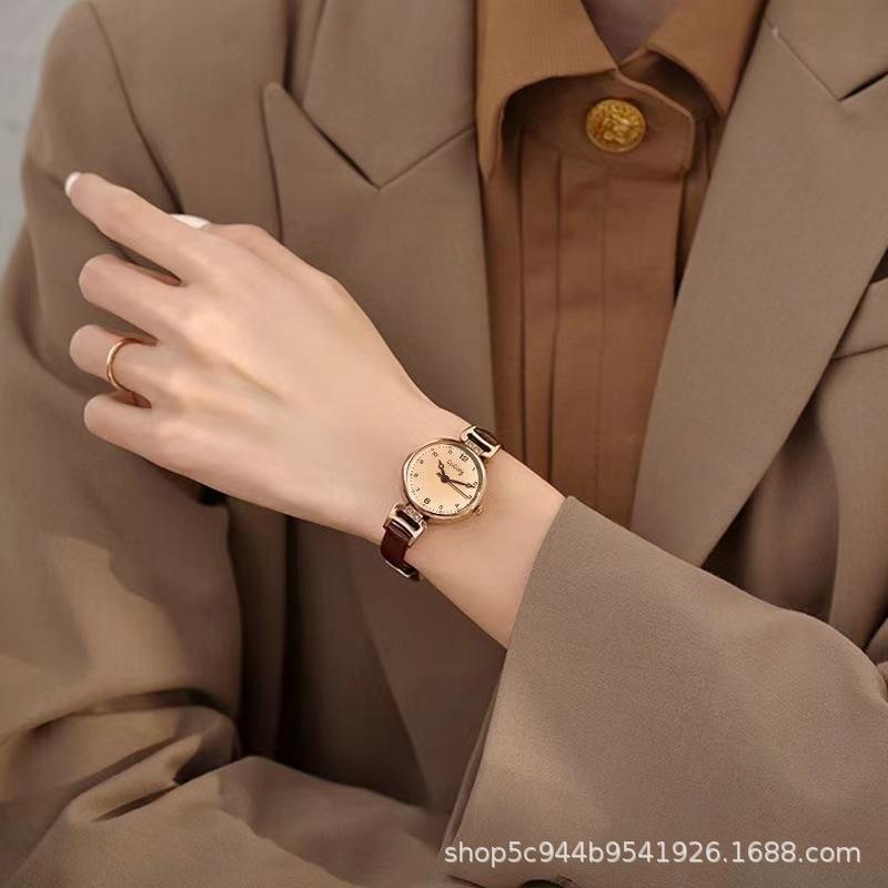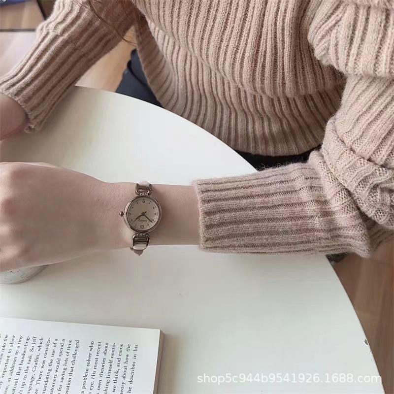 Reloj nuevo 2024 para mujer, diseño de estudiante, retro, pequeño, redondo, con cinturón, de temperamento simple.