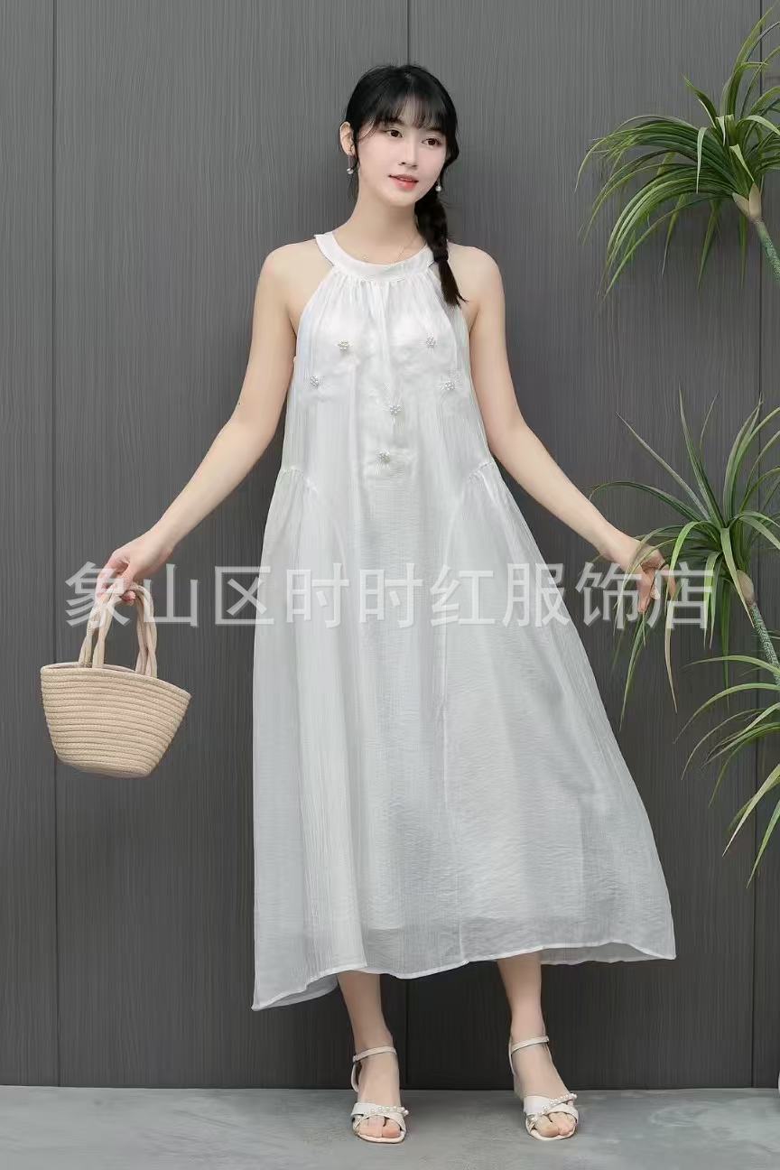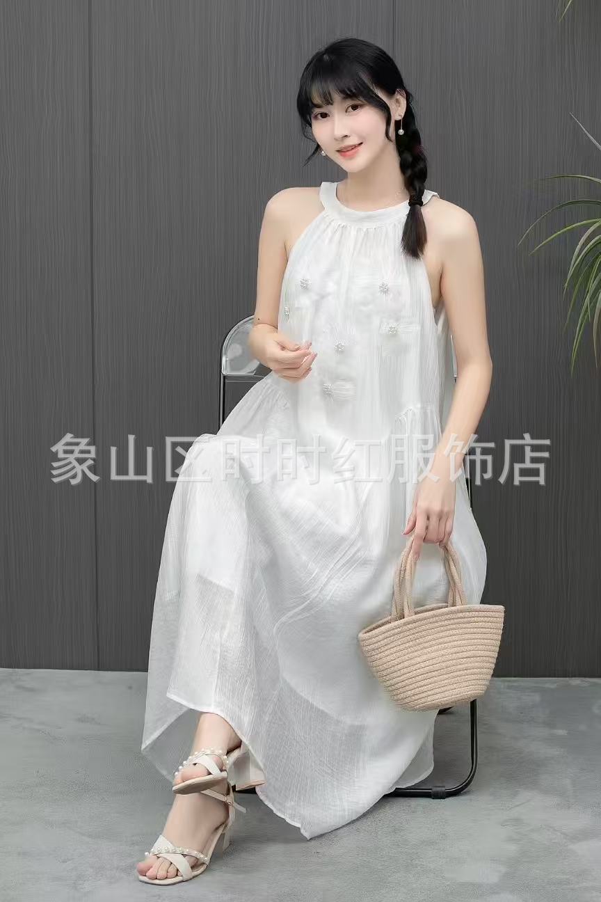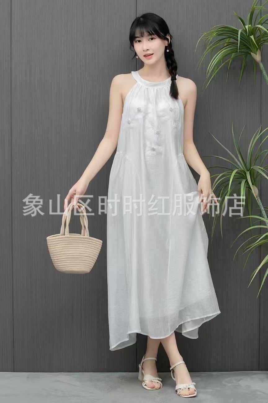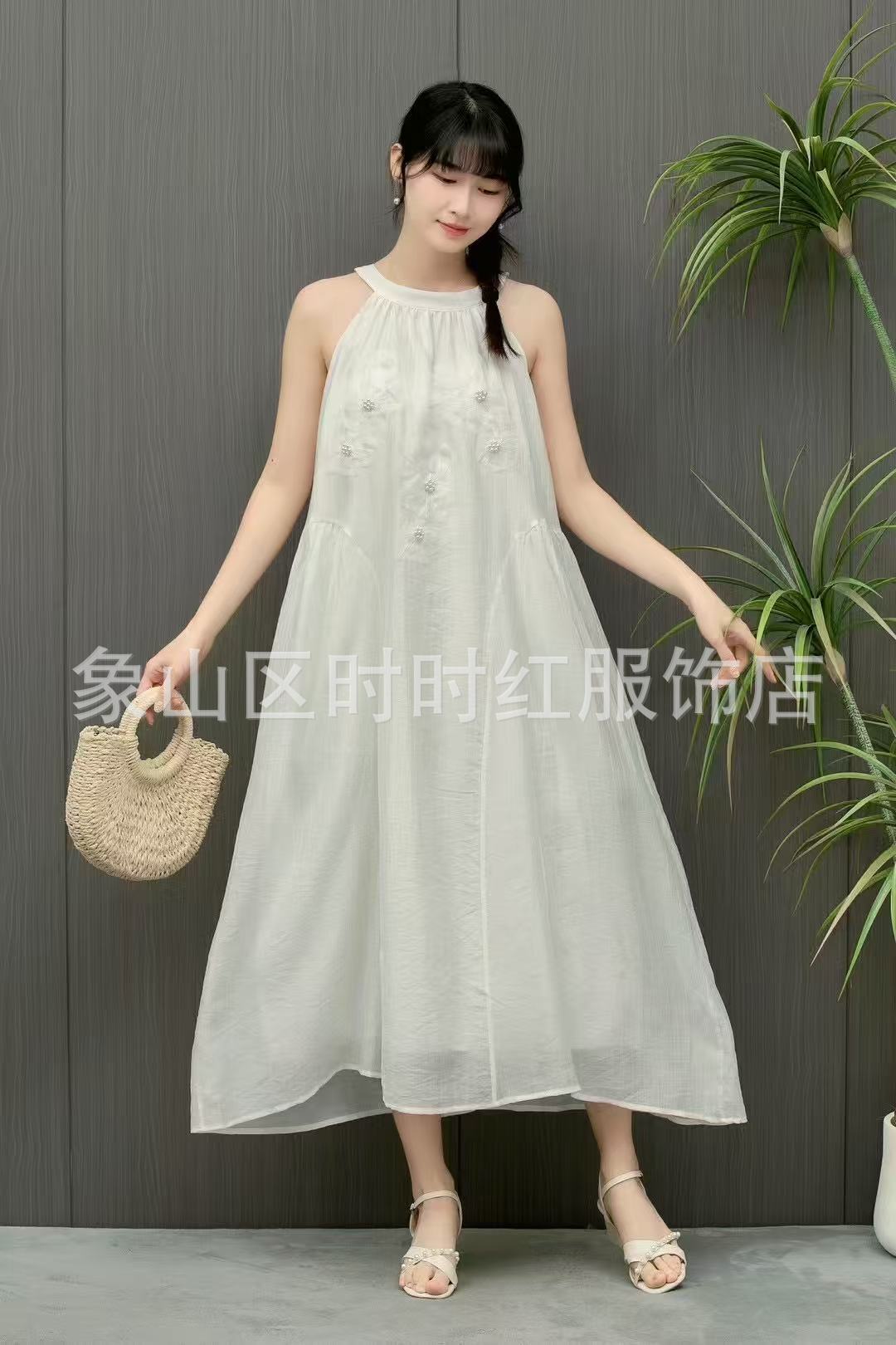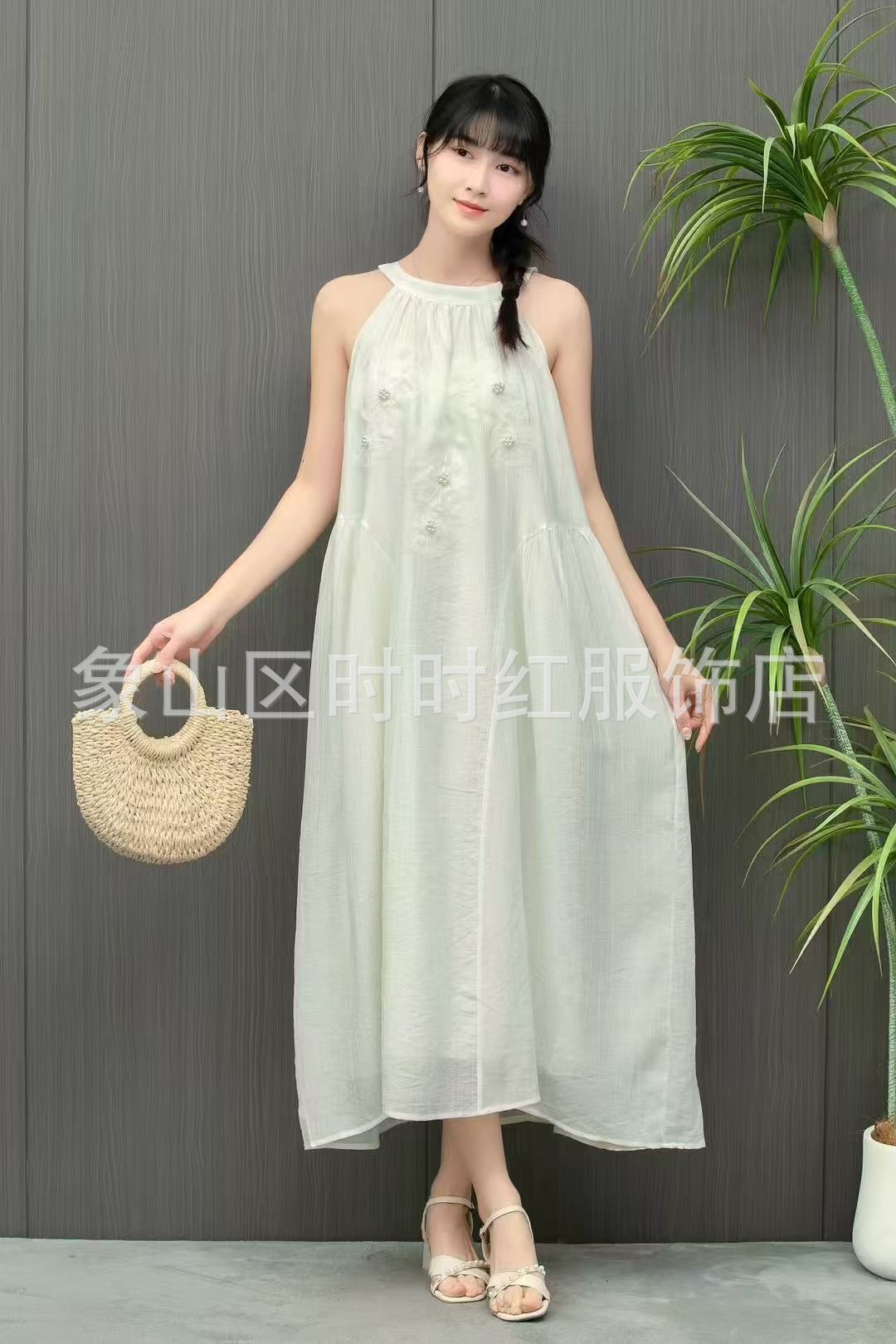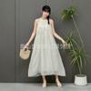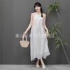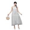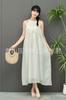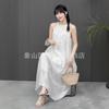 Compra Vestido de verano de alta gama, largo y de primavera, sin mangas, estilo francés, con cuello calado y teñido anudado en blanco Embryo para vacaciones en la playa. al por mayor en Joom.pro