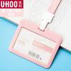 Cartoon pattern customization please consult customer service, Blue vertical version card with lanyard, Pink v...