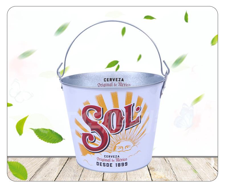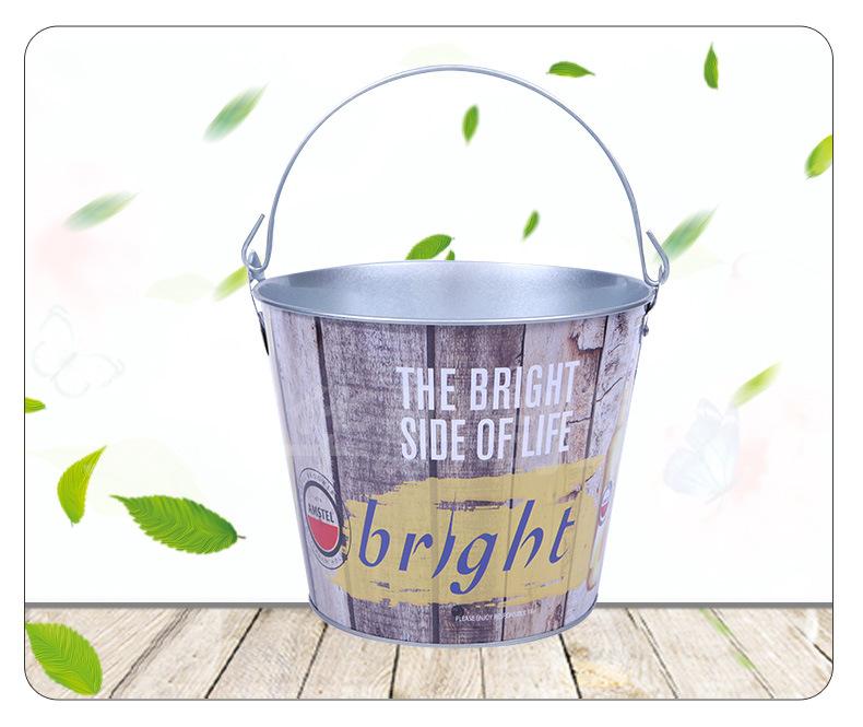 Cubo de hielo de hojalata, cubo de hielo para cerveza, cubo de hielo redondo de metal galvanizado portátil, cubo de hielo de hojalata vintage, fábrica al por mayor