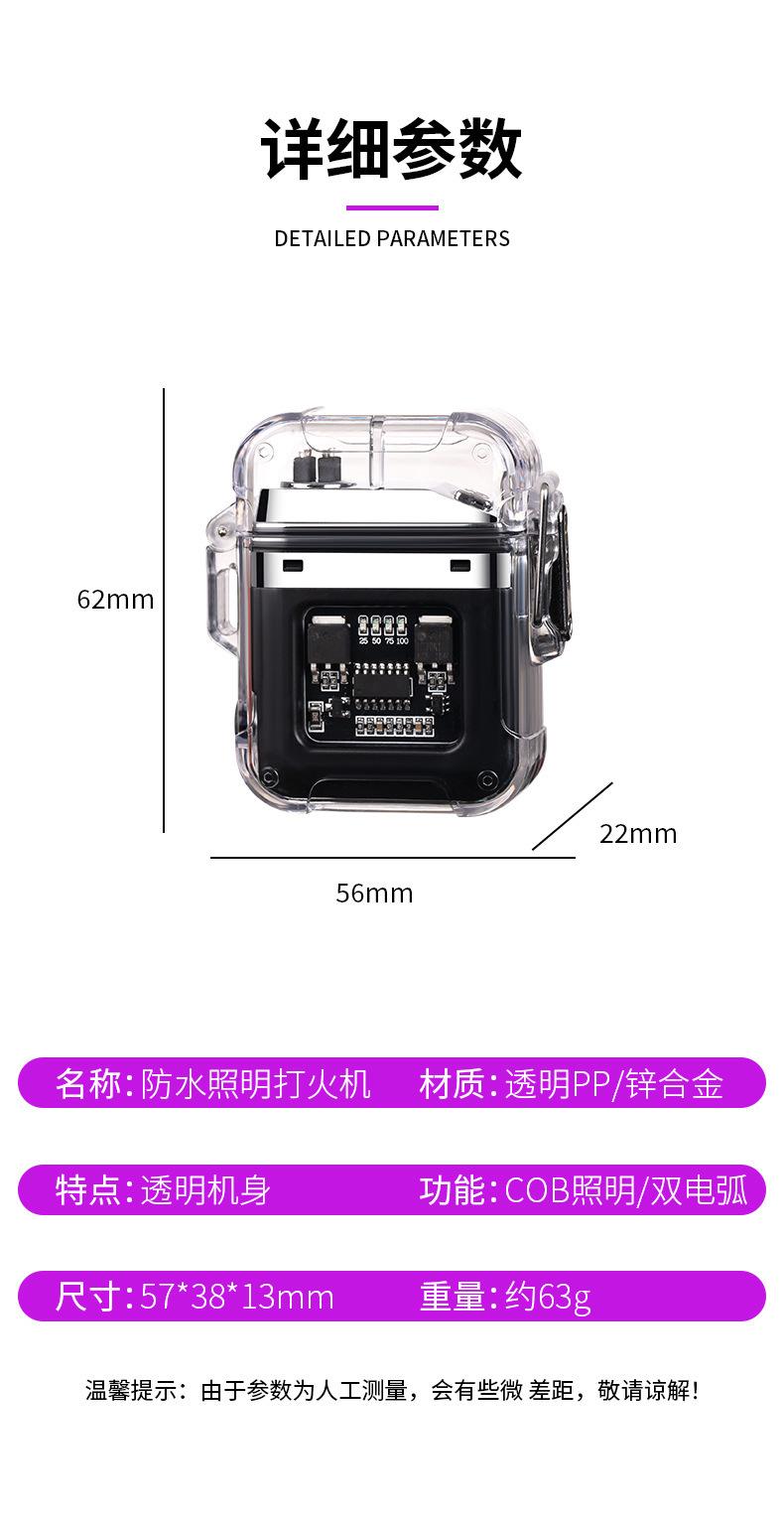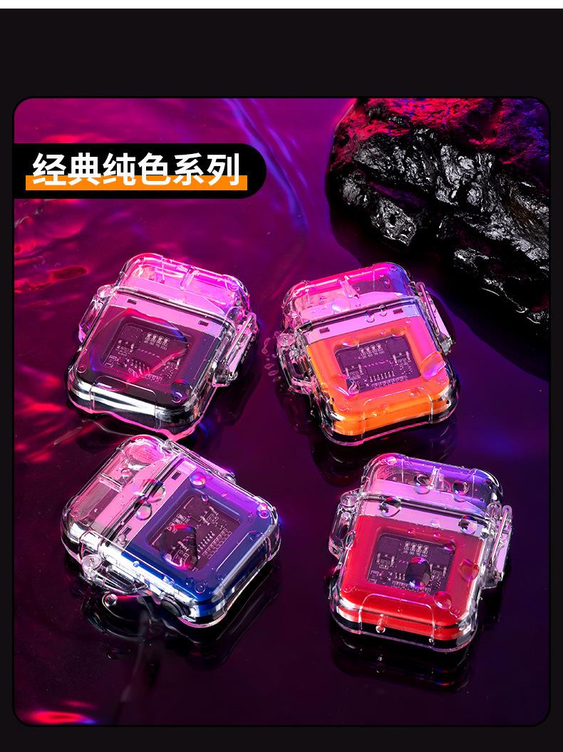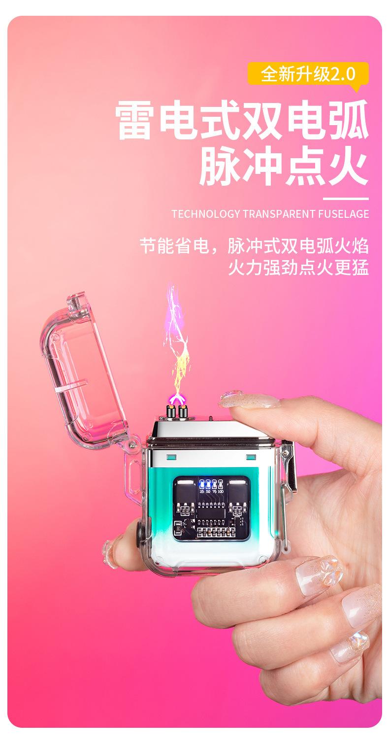 Nuevo producto, encendedor electrónico de pulso impermeable con carcasa transparente, encendedor a prueba de viento para exteriores, encendedor impermeable de doble arco, encendedor transfronterizo