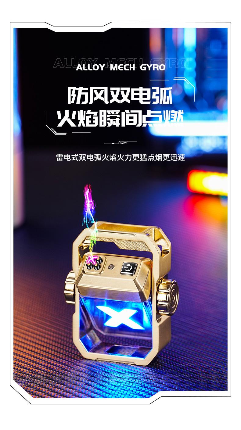 Encendedor mecánico transparente mecha giroscópica de alta gama juguete para descompresión regalo de alta gama encendedor de cigarrillos de doble arco recargable