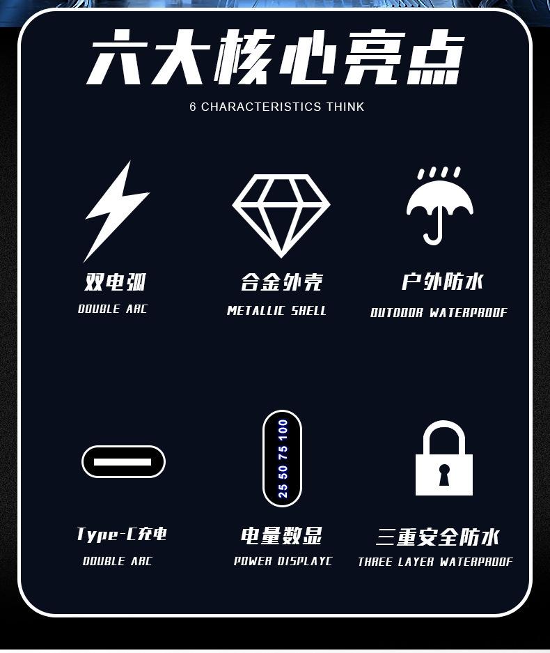 Compra 2218 encendedor de metal impermeable de doble arco de carga metal mecha triple impermeable fábrica directa al por mayor al por mayor en Joom.pro