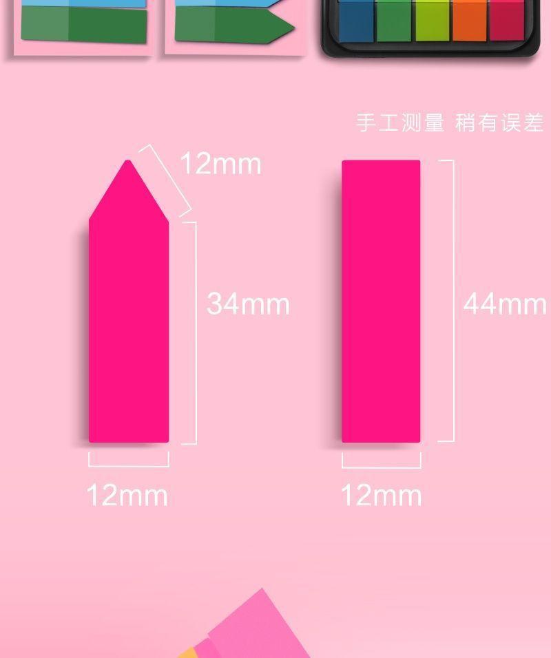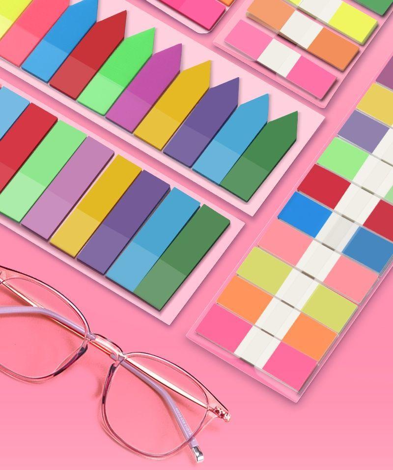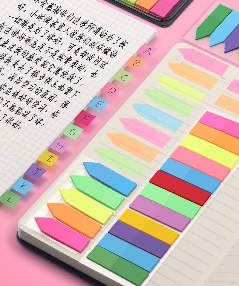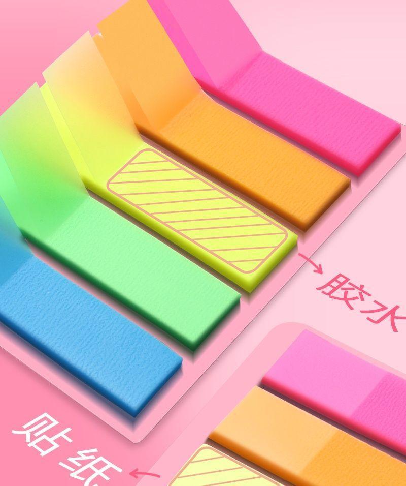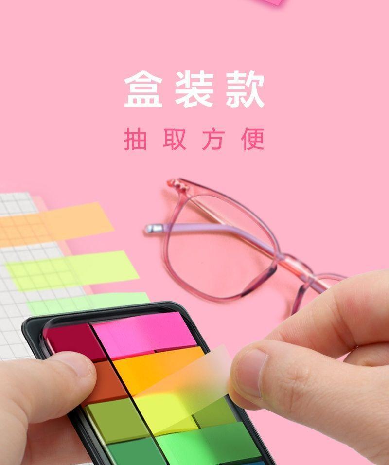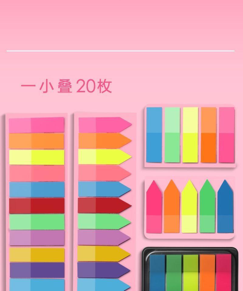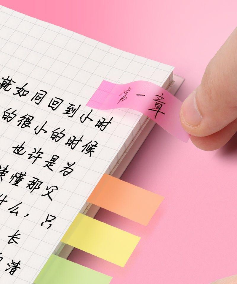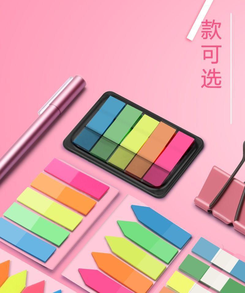 Notas adhesivas adhesivas, papel de índice, tira de marcador, marcador de plástico, uso estudiantil, indicador translúcido, película fluorescente, adhesivo adhesivo