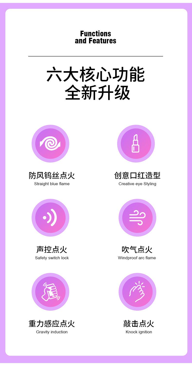 Encendedor de tungsteno WD896 con carga por lápiz labial, resistente al viento, interruptor de inducción por gravedad y encendido inteligente.