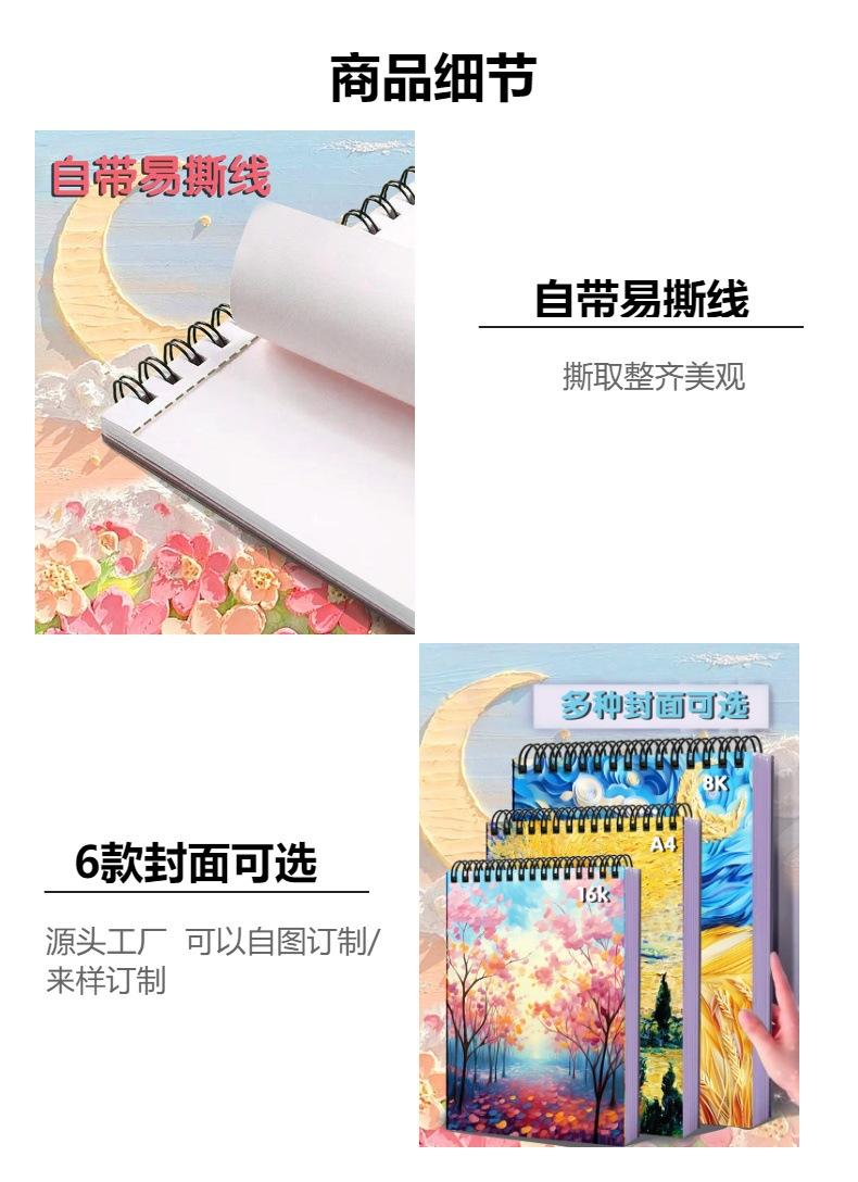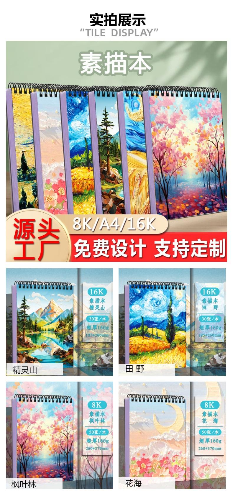 Cuaderno de bocetos de 8K de grosor, libro de pintura para estudiantes de arte, libro de bocetos A4 pintado a mano, libro de pintura para estudiantes, papel de boceto de 16K, libro de pintura al óleo