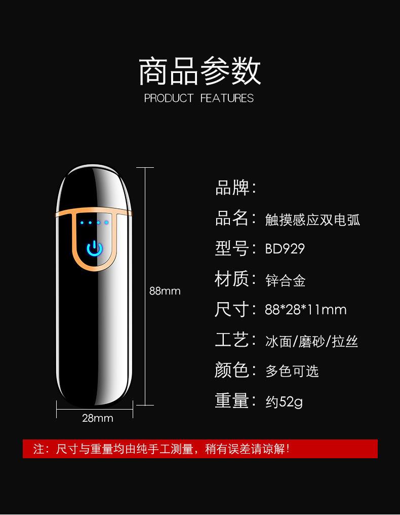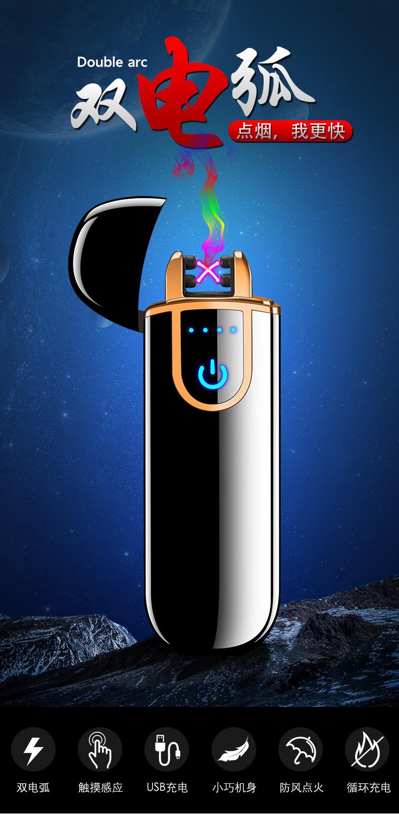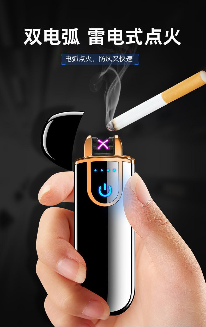 Encendedor de carga directa de fábrica, interruptor táctil LCD, pantalla de doble arco, publicidad personalizada, encendedor al por mayor
