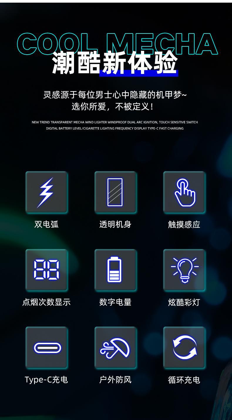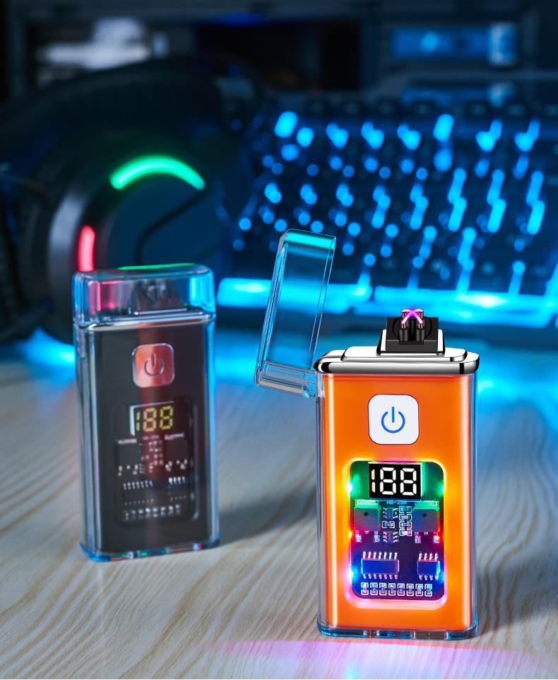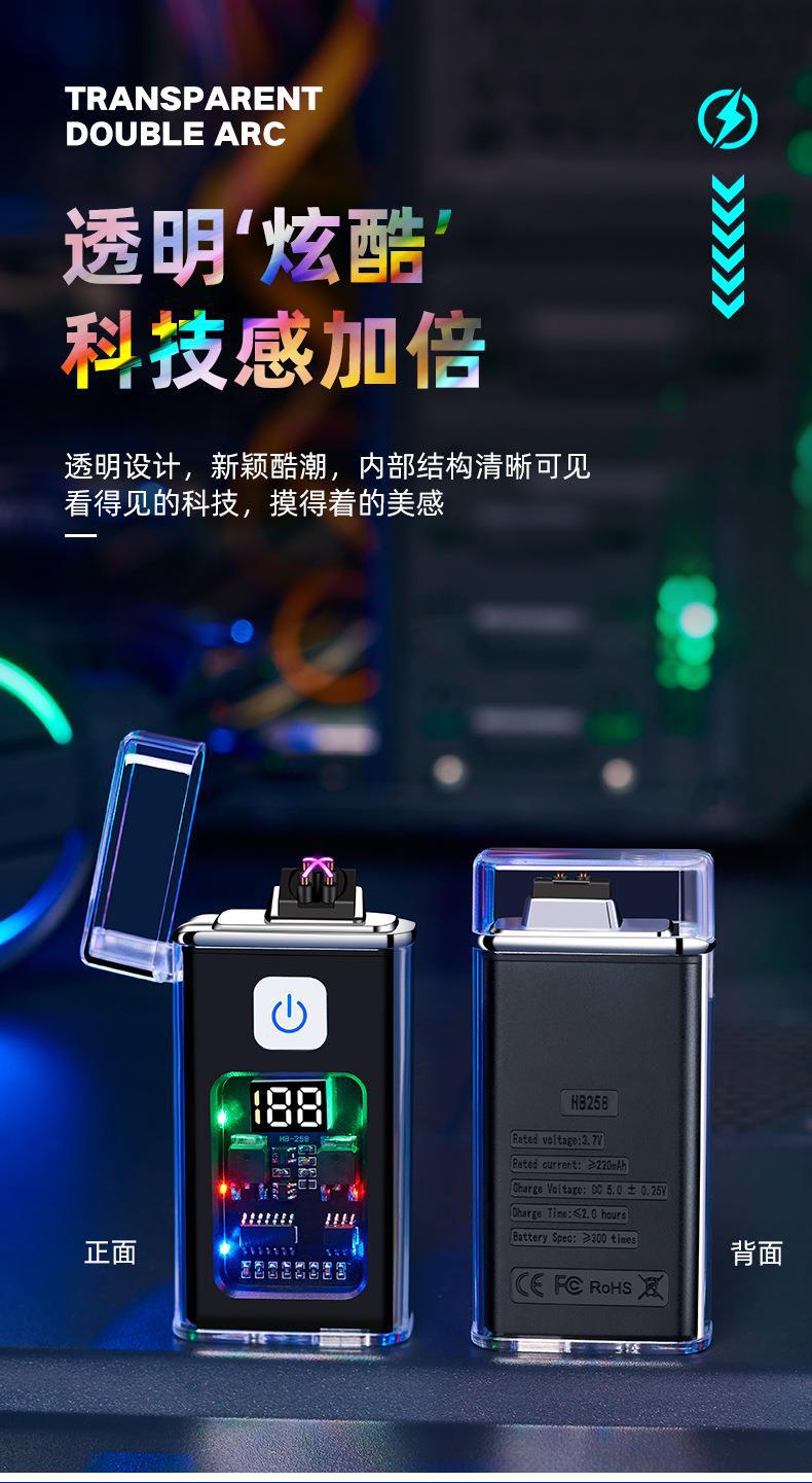 Venta al por mayor, encendedor de inducción de arco dual con carcasa transparente, tipo E, carga rápida, pantalla digital, encendedor de carga, oferta especial.