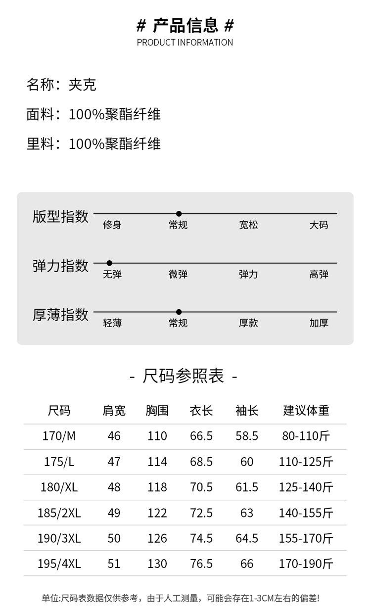 170/M, 175/L, 180/XL, 185/XXL, 190/XXXL, 195/XXXXL