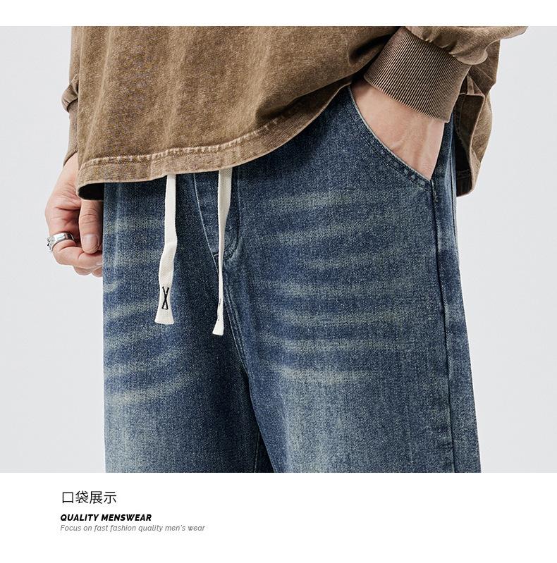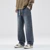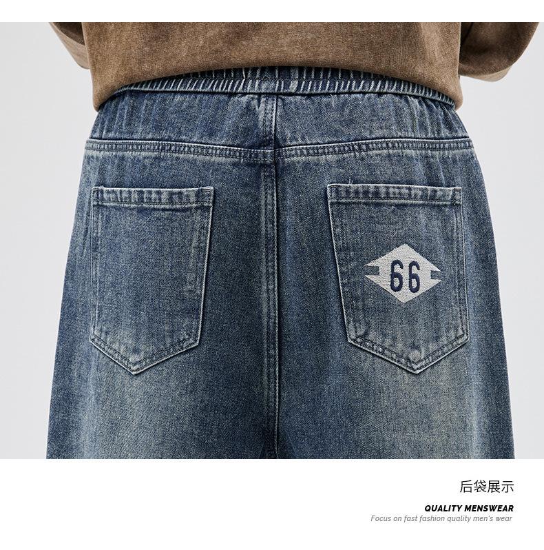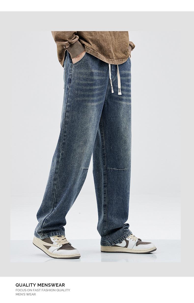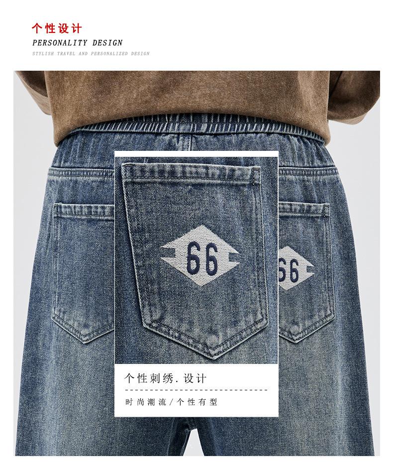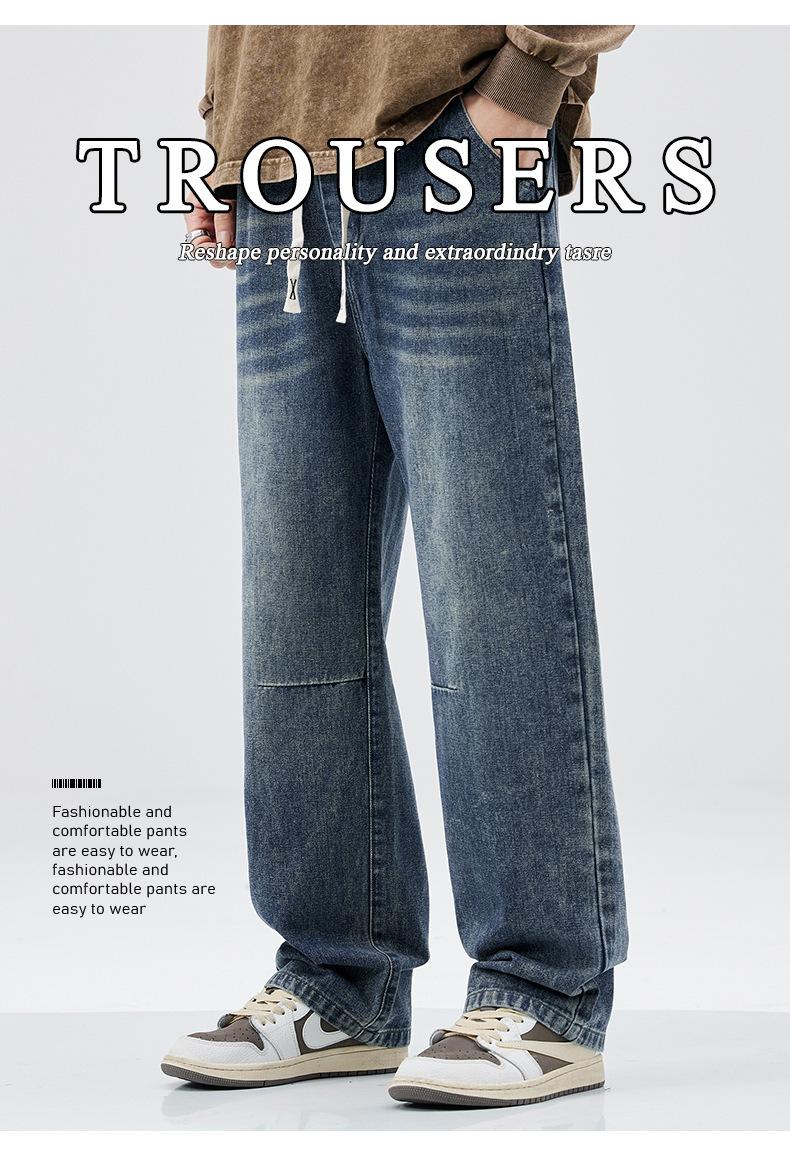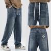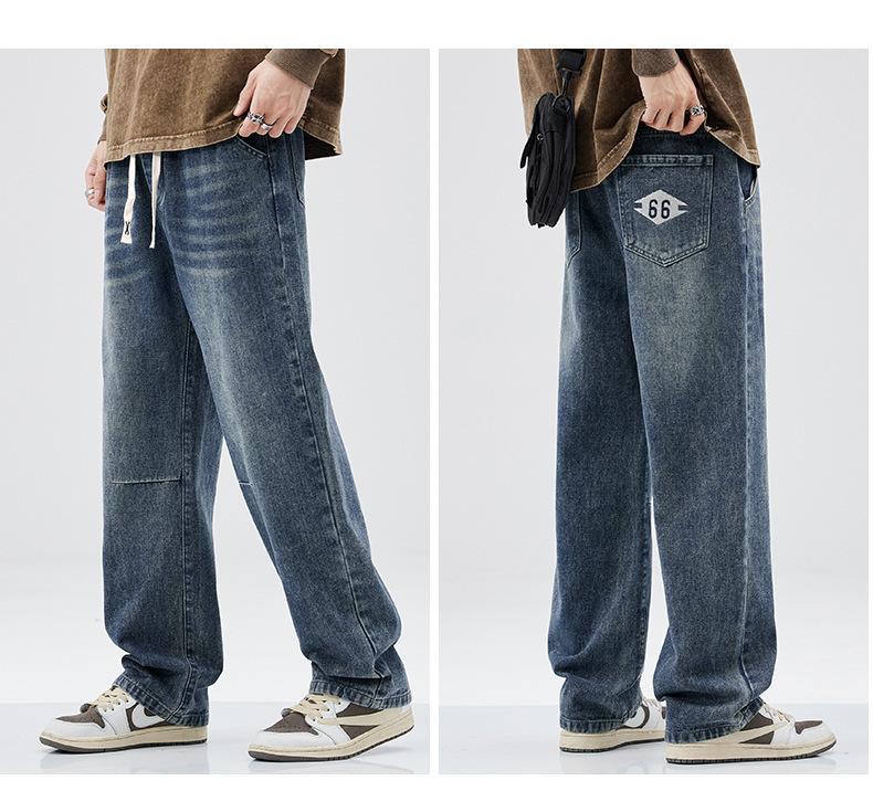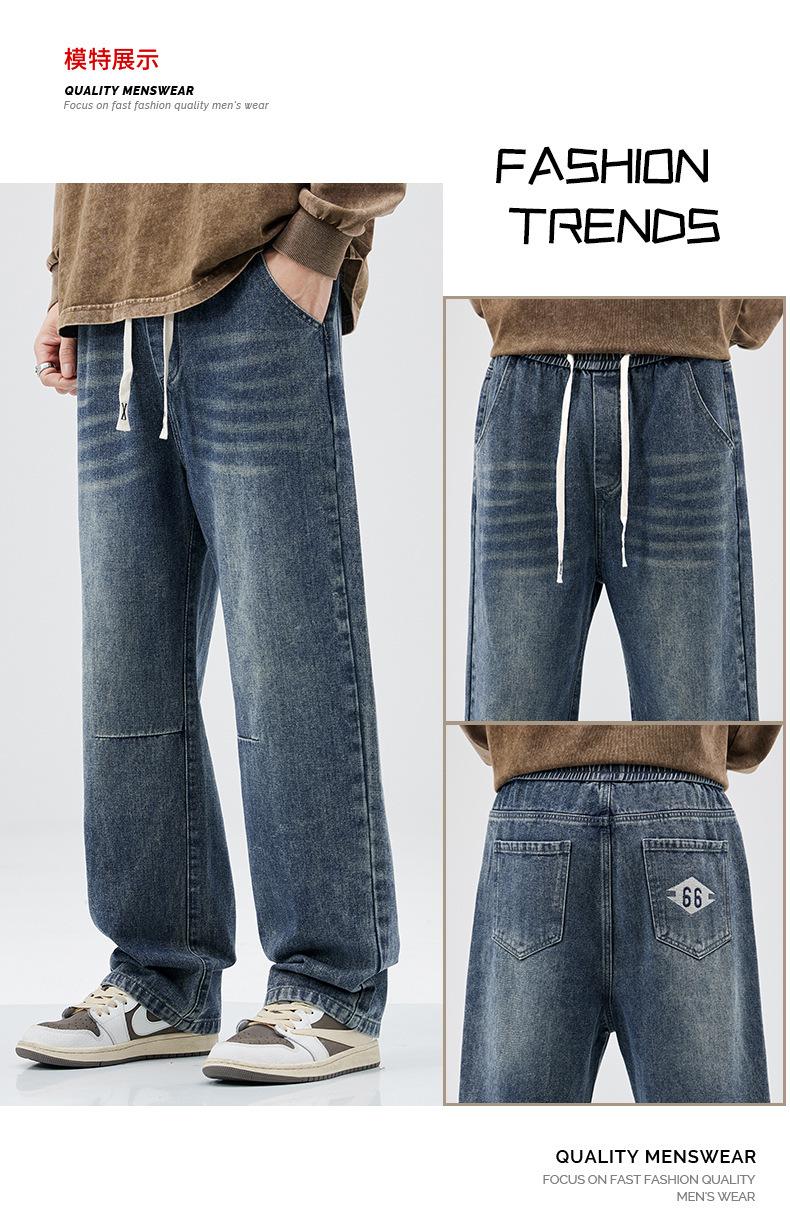 Jeans para hombre 2023 Otoño Nuevo Americano high street rectos cintura elástica pantalones casuales marca de moda Pu pantalones guapos de hombre