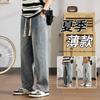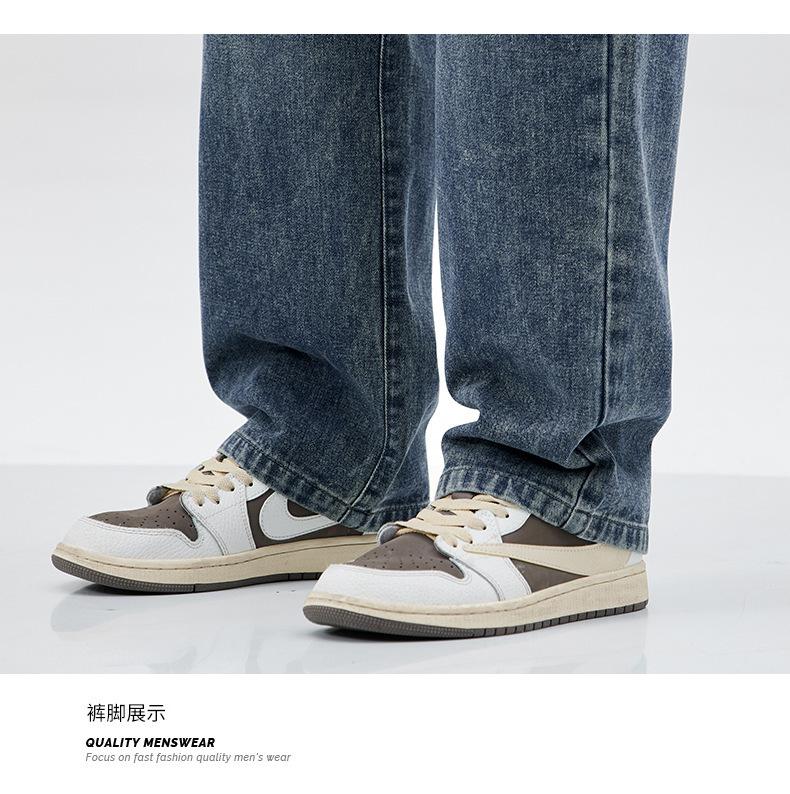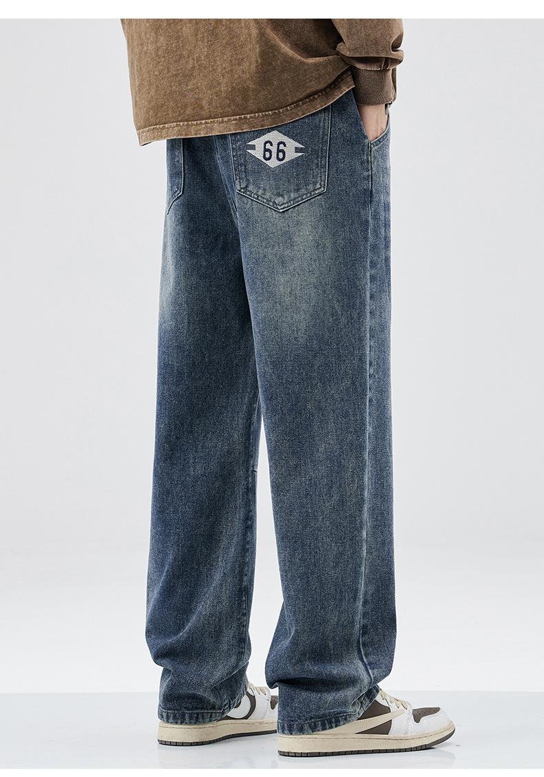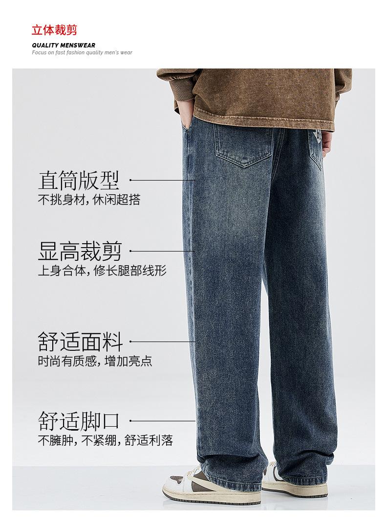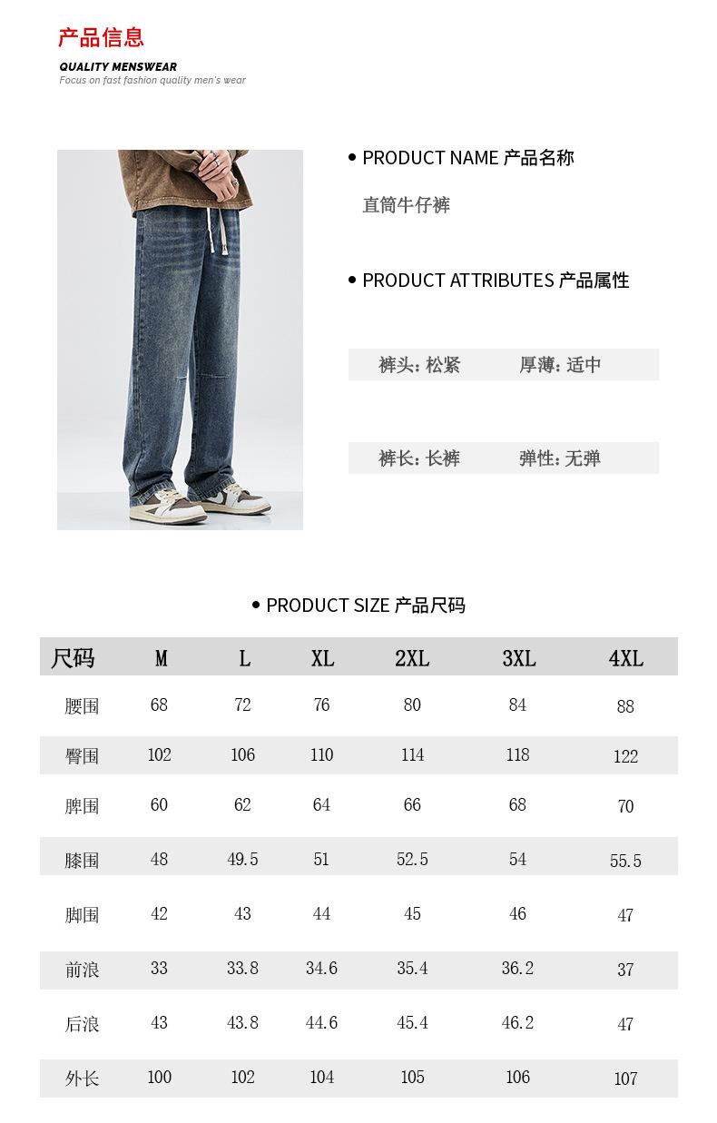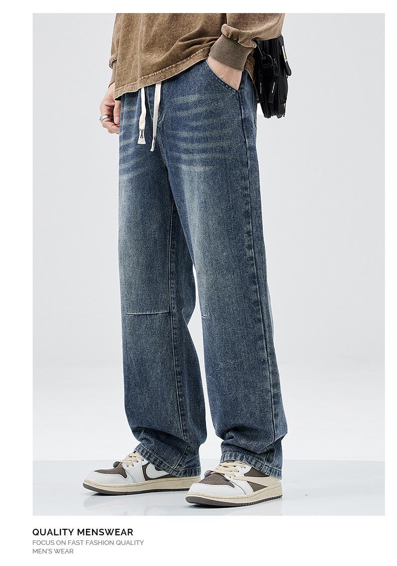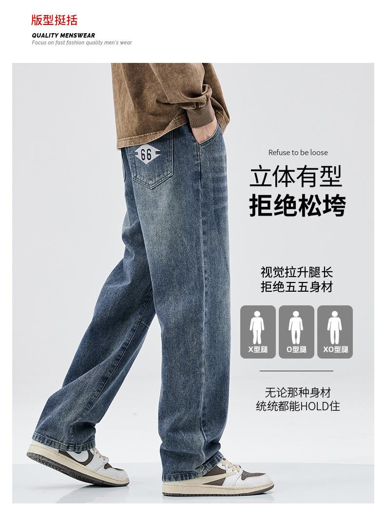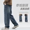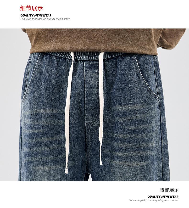 Jeans para hombre 2023 Otoño Nuevo Americano high street rectos cintura elástica pantalones casuales marca de moda Pu pantalones guapos de hombre