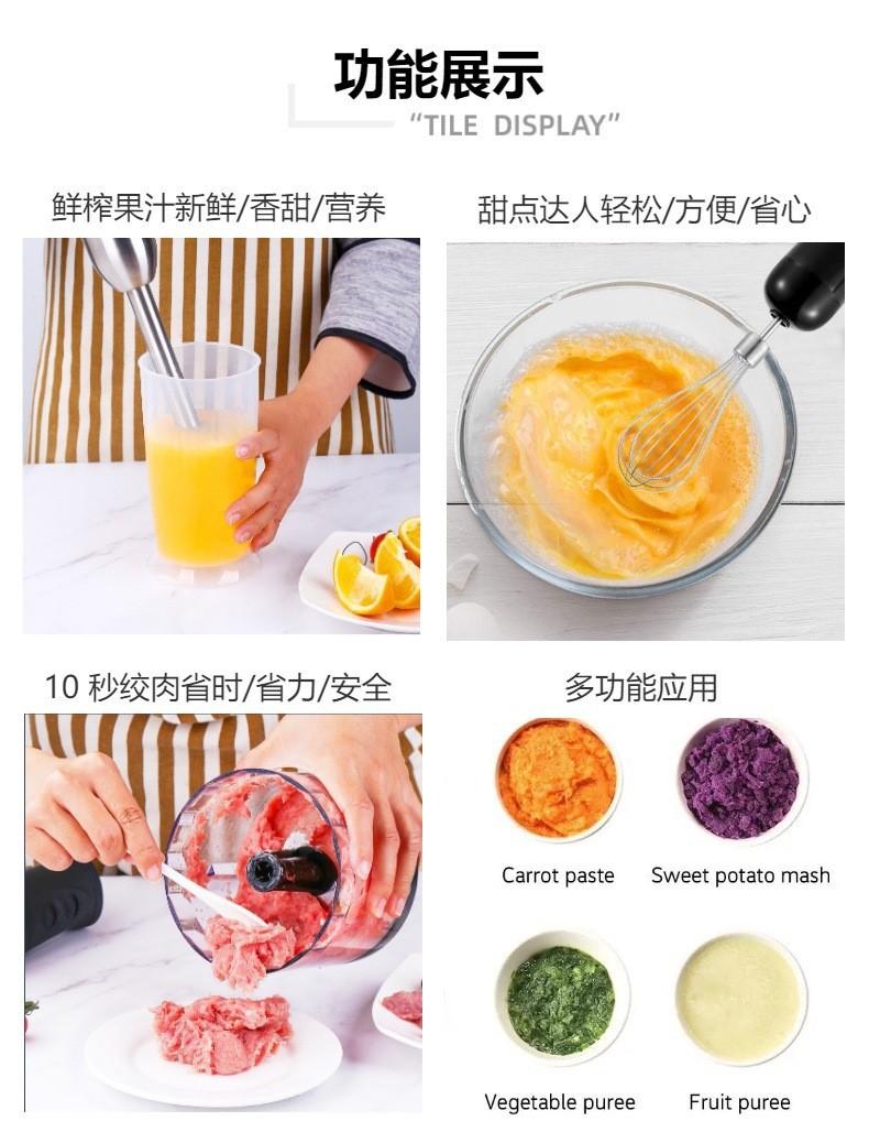 Fabricantes transfronterizos seleccionan batidora de mano multifuncional eléctrica para cocinar electrodomésticos cuerpo de plástico regalos para bebés