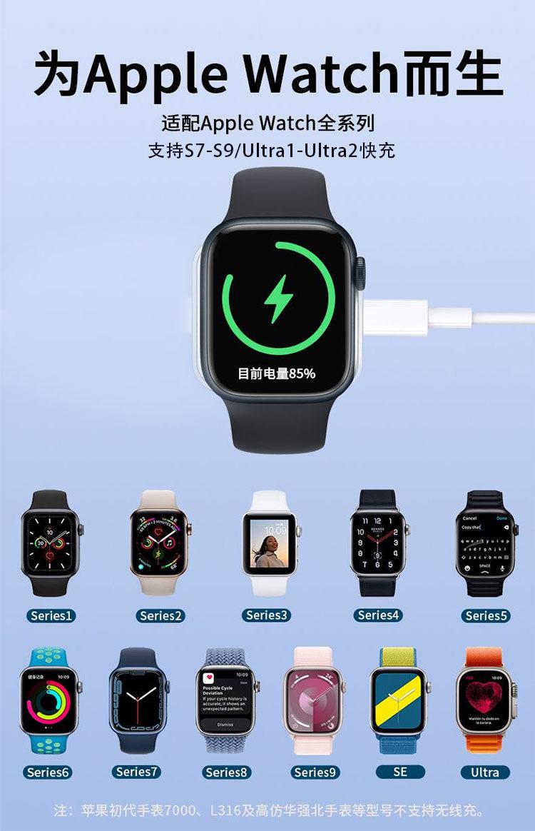 Carga Rápida de 5W Adecuada para Apple iWatch Cargador Inalámbrico Ultra Watch S1 a S110 Cargador Portátil Magnético de Apple