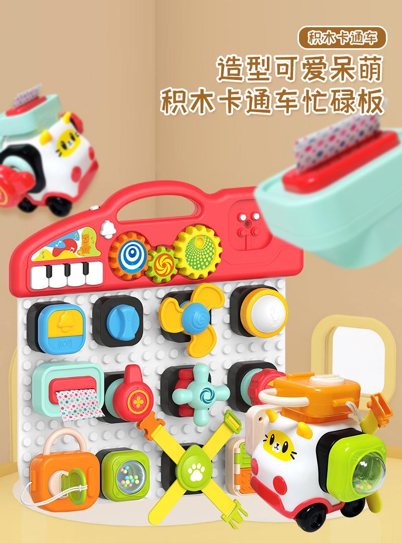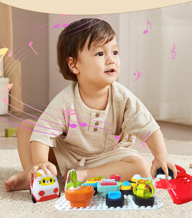 Tablero de actividades Montessori para niños de Huang'er, bloques de construcción ensamblados con música, rompecabezas de acción fina, juguetes de iluminación para jardín de infantes