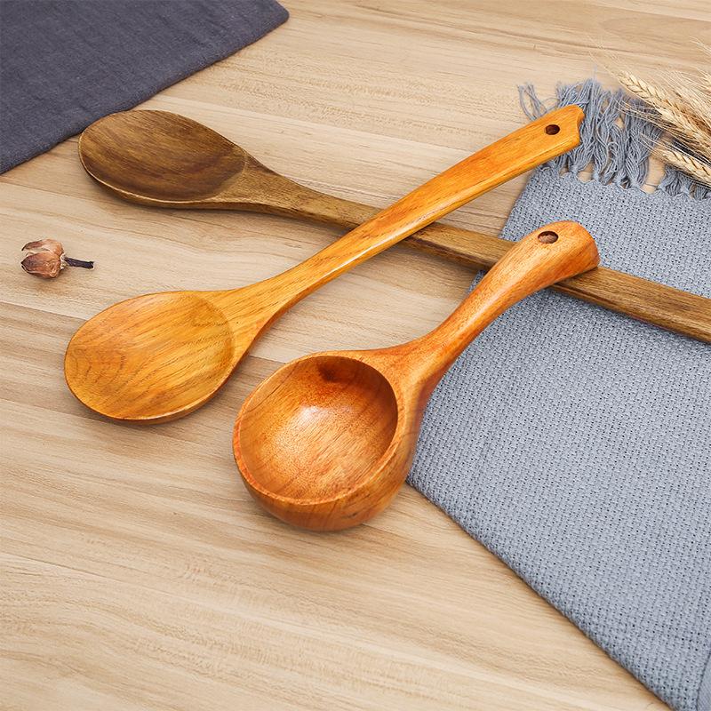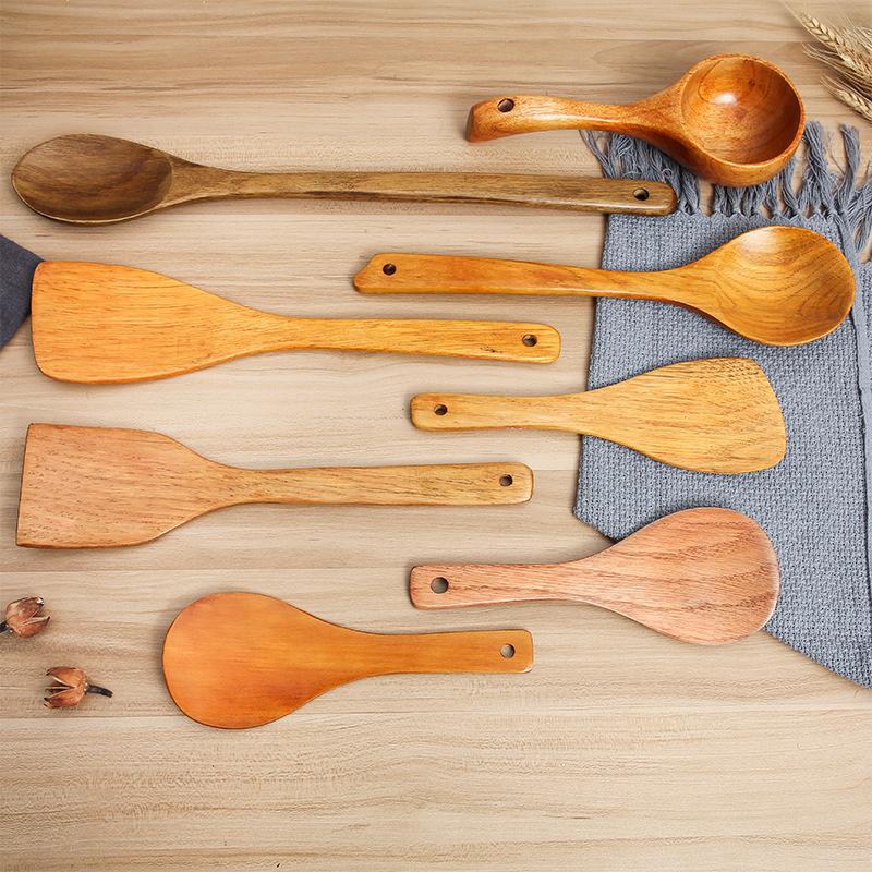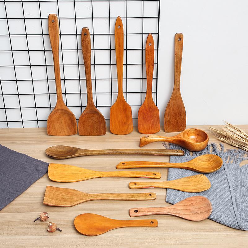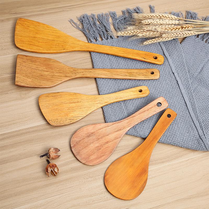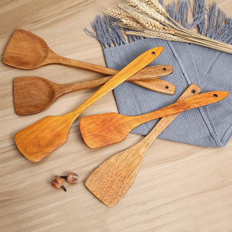 Venta al por mayor de fábrica Komu pintura color natural espátula de mango largo utensilios de cocina para cocinar antiadherente mango largo espátula de madera cuchara para sopa