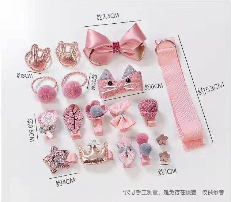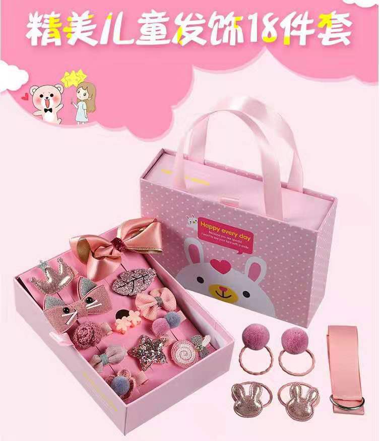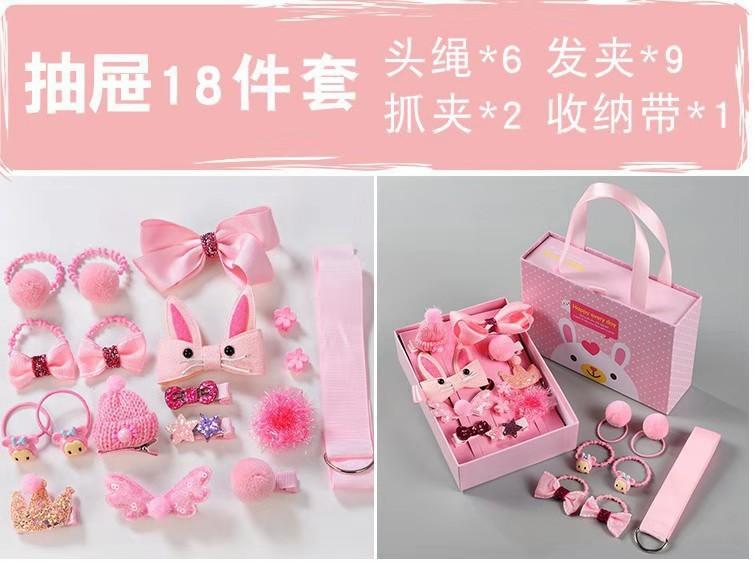 Nueva caja de regalo portátil de 18 piezas para niños, tocados de estilo coreano, horquillas para el cabello para niños, corona de princesa, accesorios para el cabello, lindo lazo