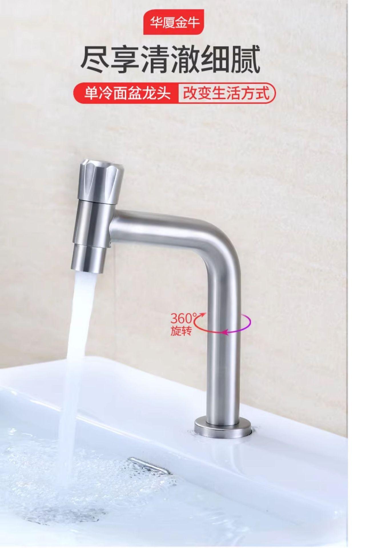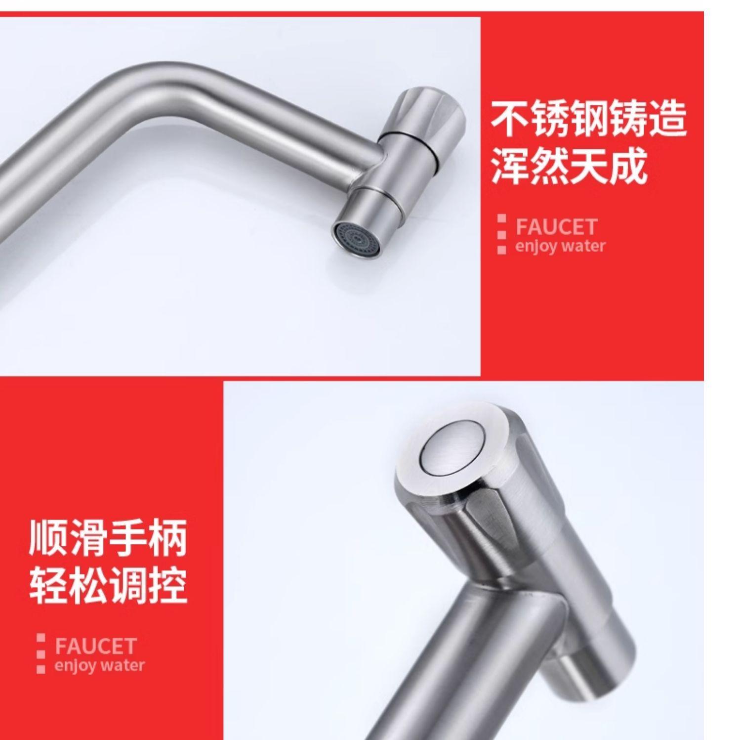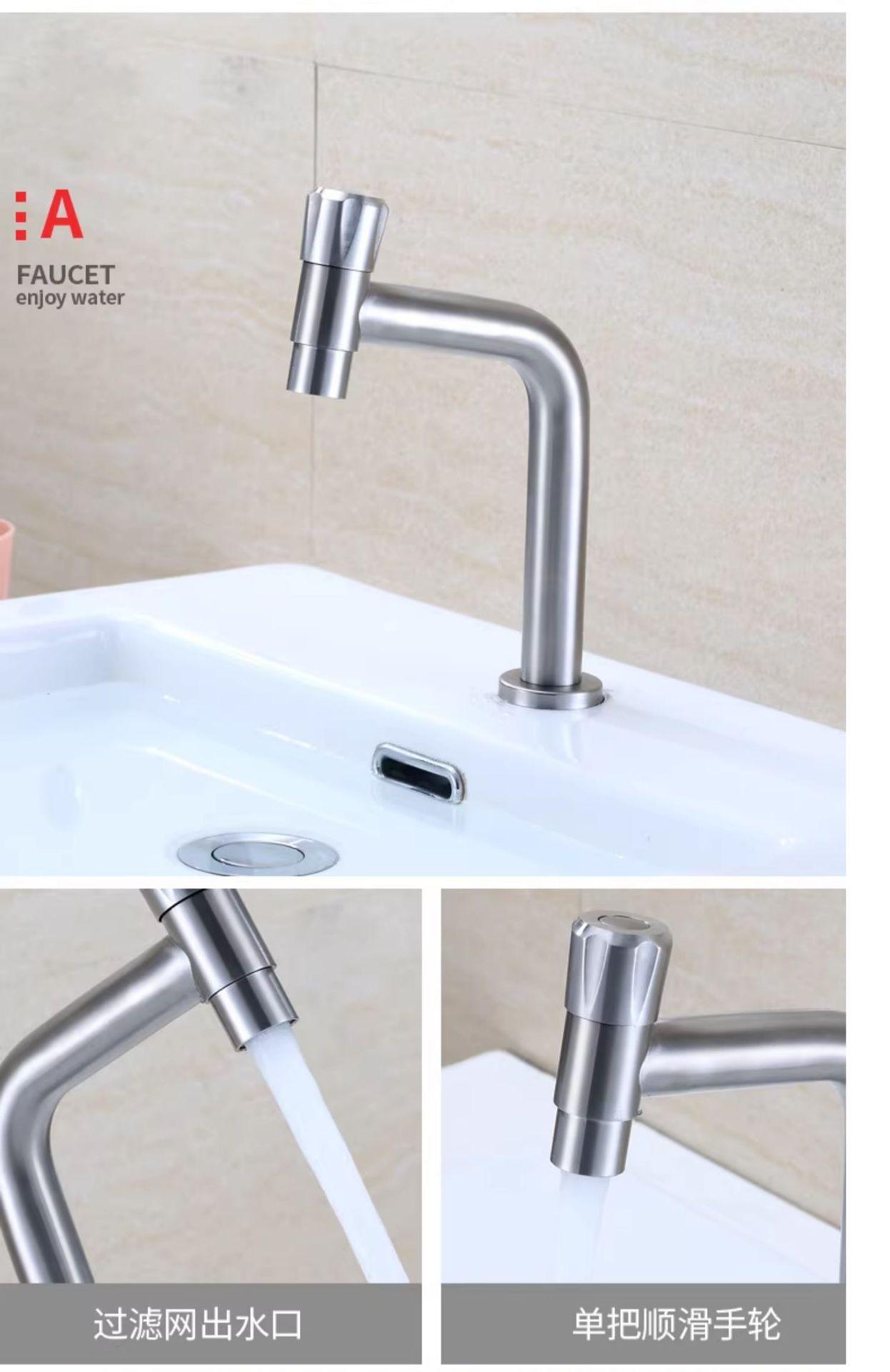 Lavabo de acero inoxidable 304 grifo de lavabo de un solo frío lavabo de inodoro lavabo de encimera grifo de altura doméstico