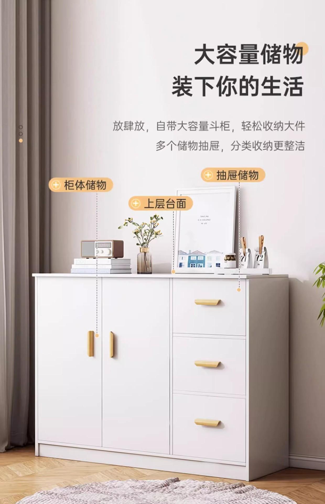 [double door and three drawers] warm white 100*36*80cm, [double door and three drawers] pastoral oak color 100...