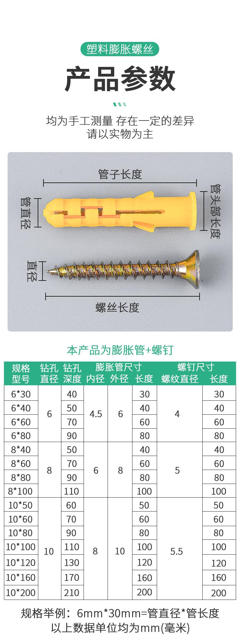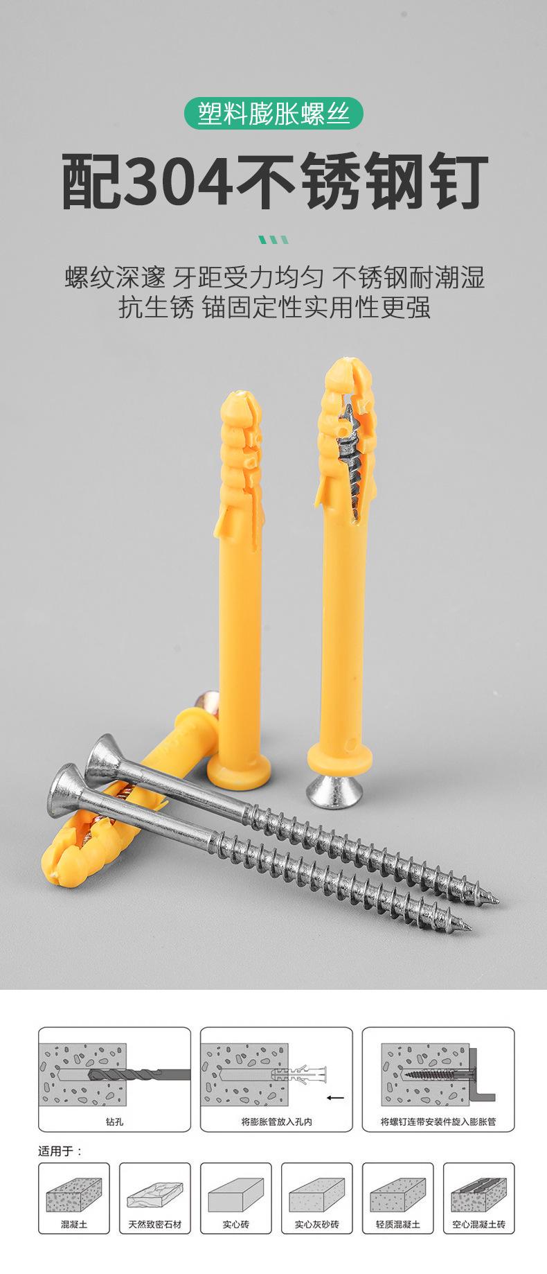 Tornillo de expansión de corvina amarilla pequeña, tubo de expansión m6 con tornillo autorroscante, apto para clavos de pared, tapón de expansión, clip de tapón de goma de 6, 8 y 10 mm