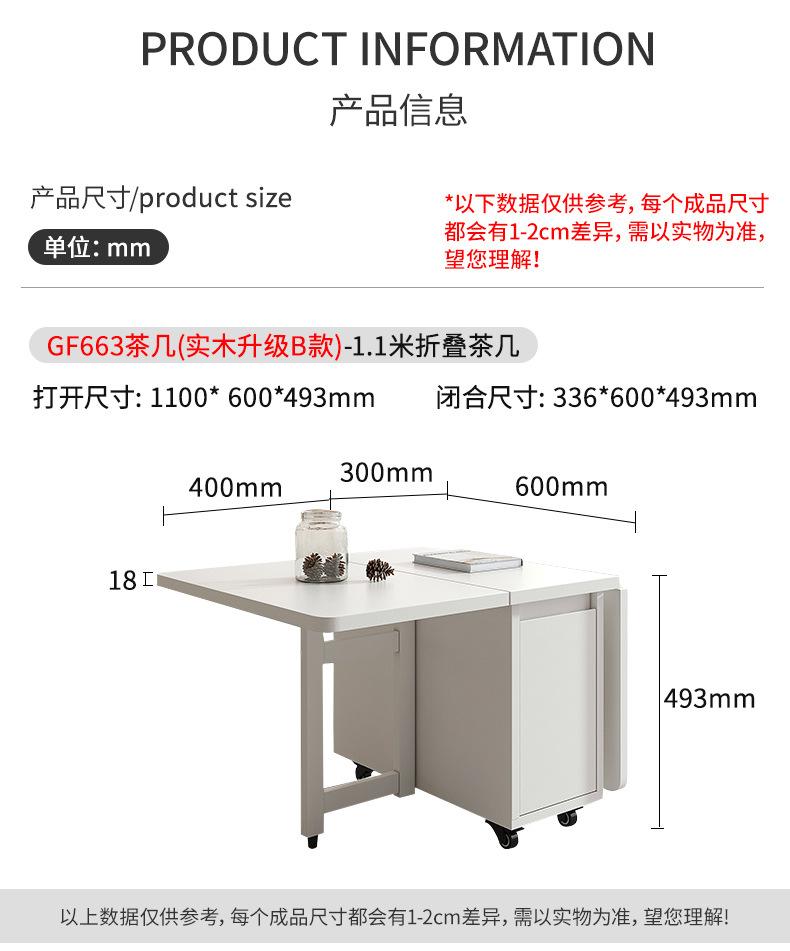 Solid wood upgraded model b 1.1m folding coffee table (warm white)