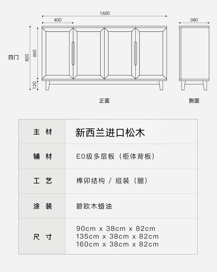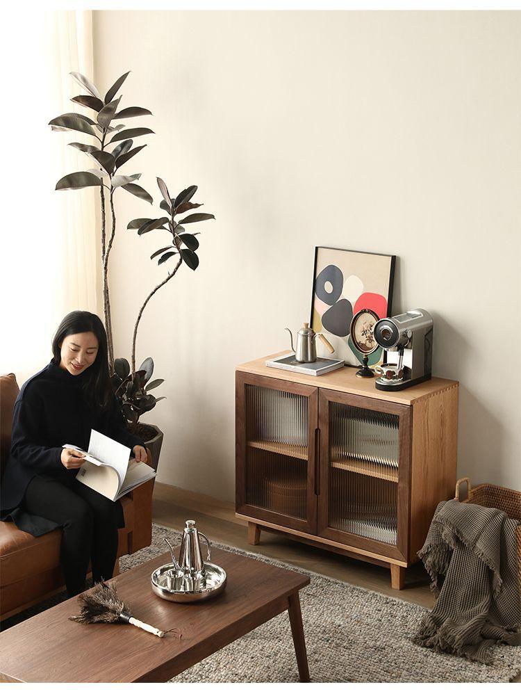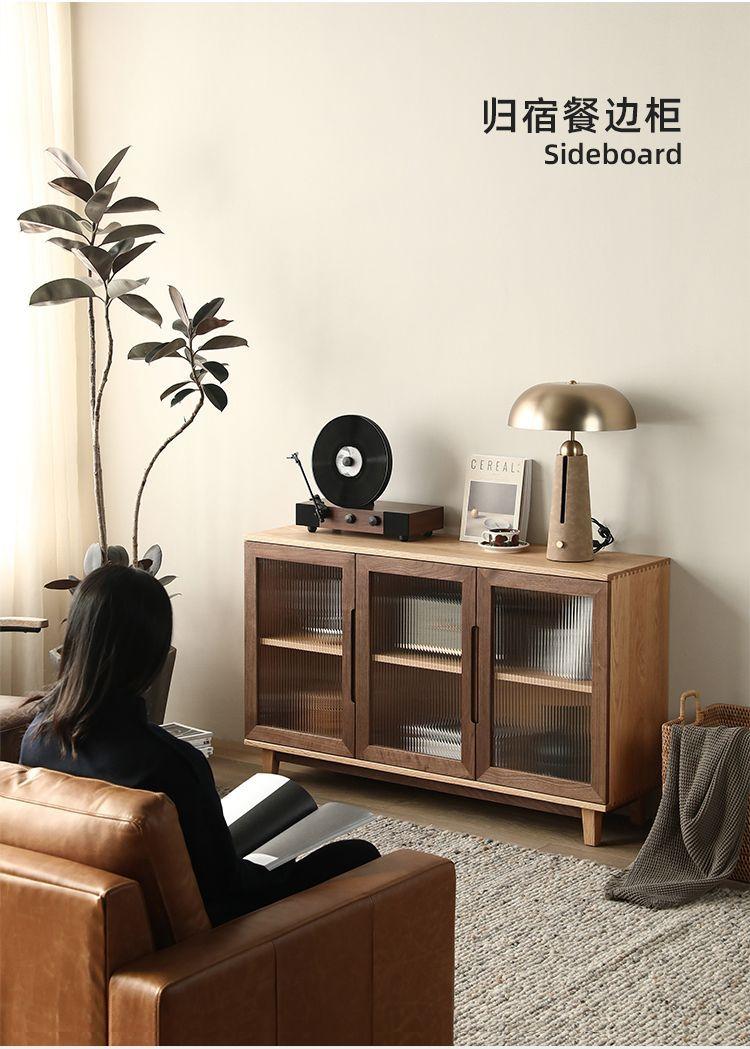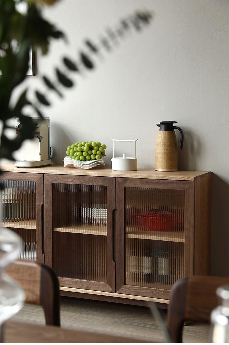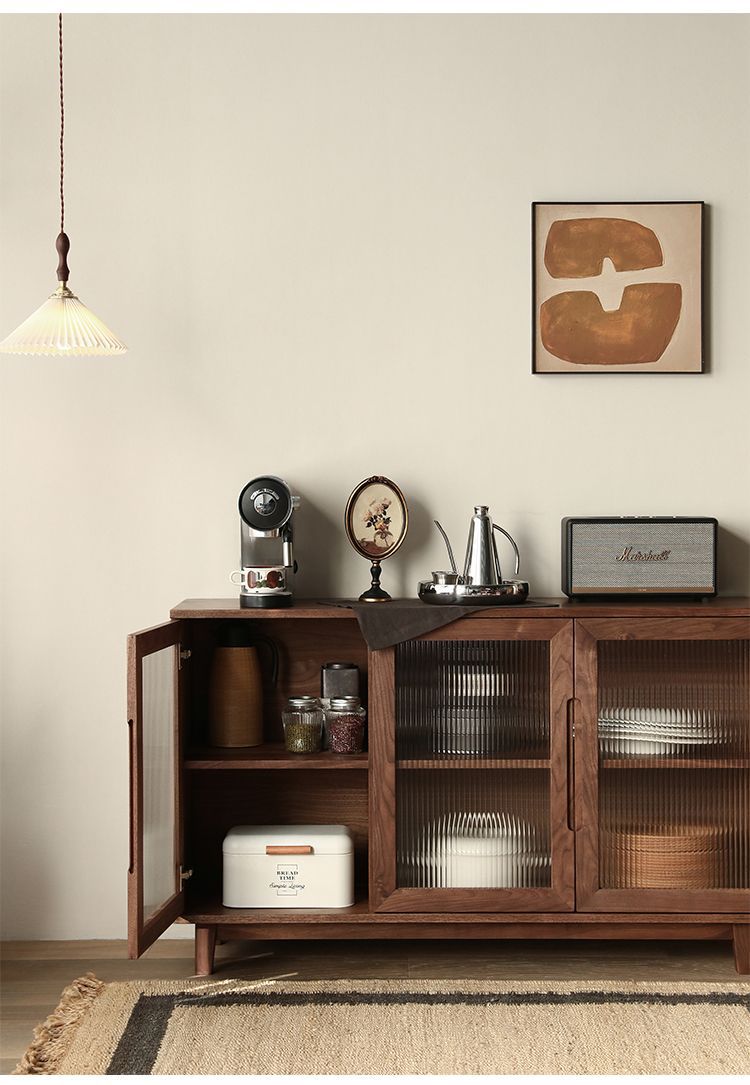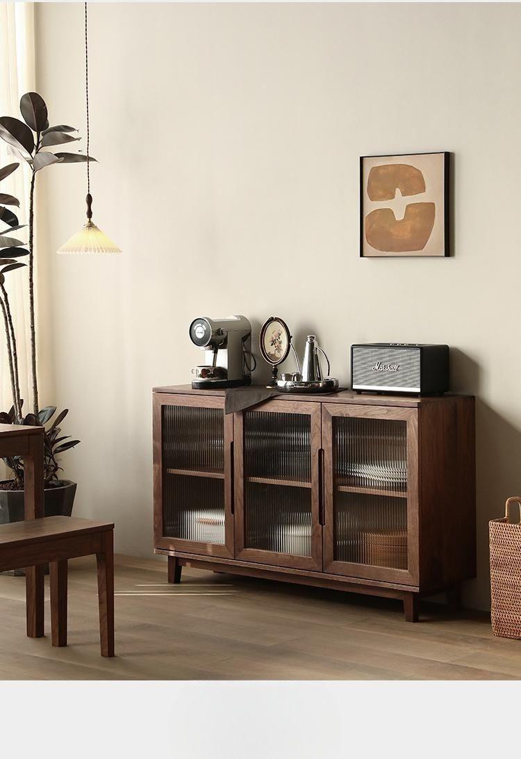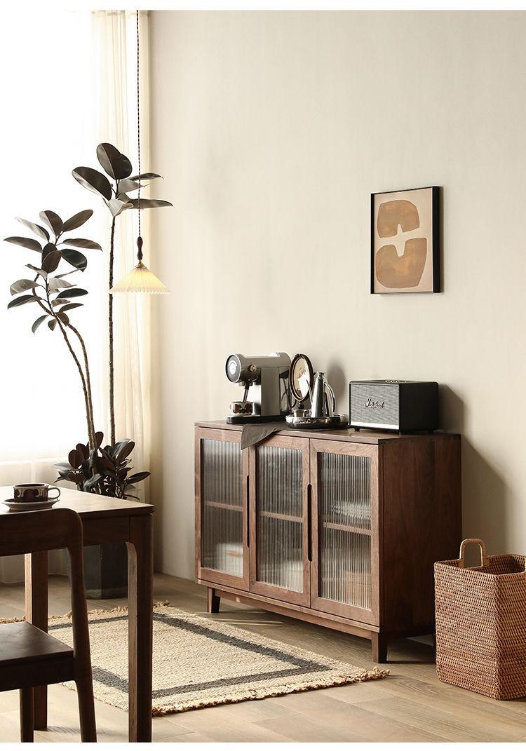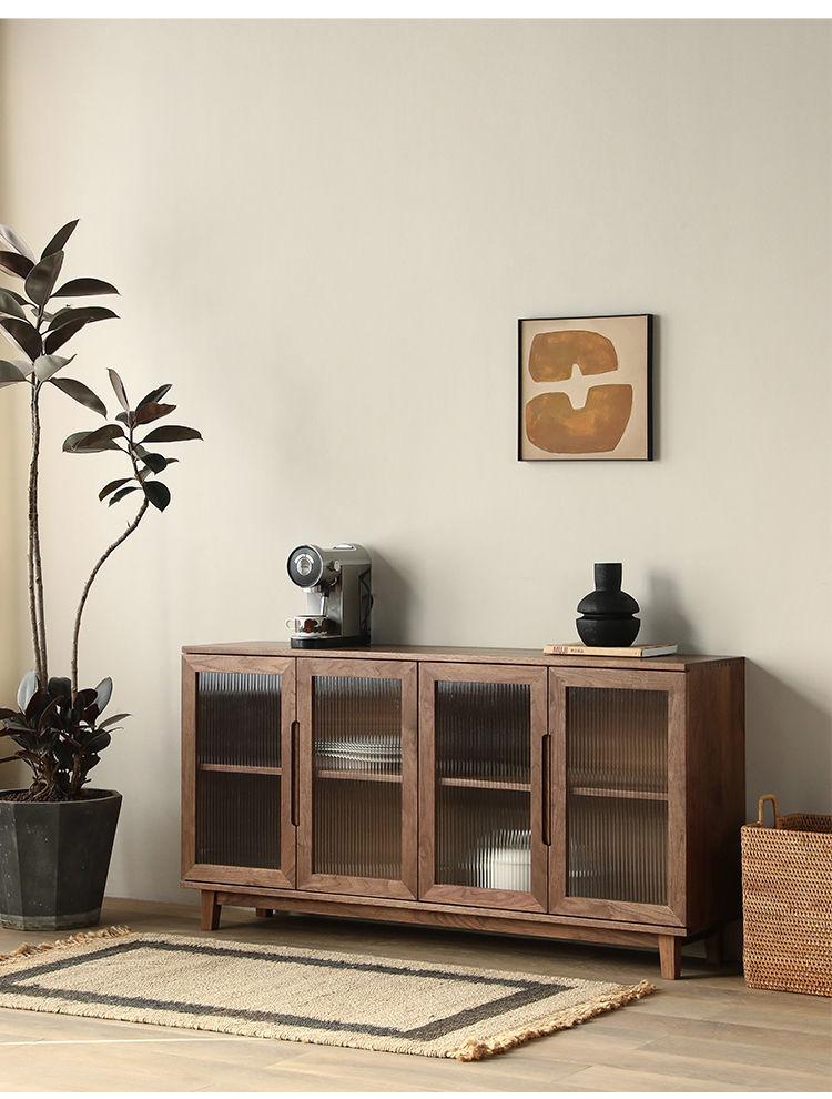 Estilo Nórdico Tronco Nogal Negro Roble Estilo Nórdico Japonés Madera Maciza Muebles de Comedor Almacenamiento Aparador
