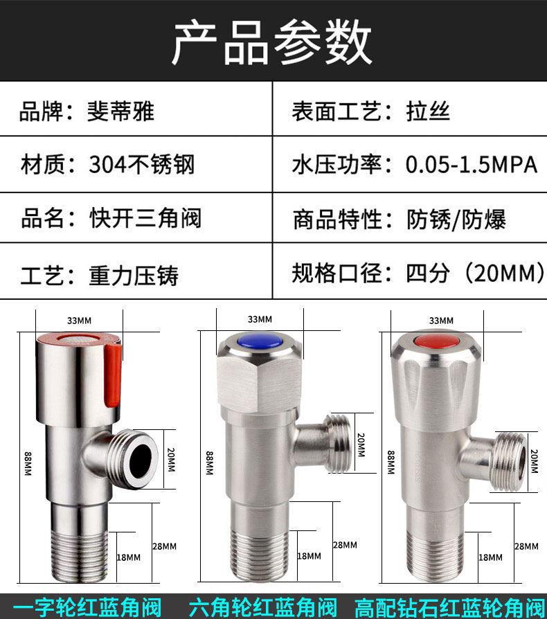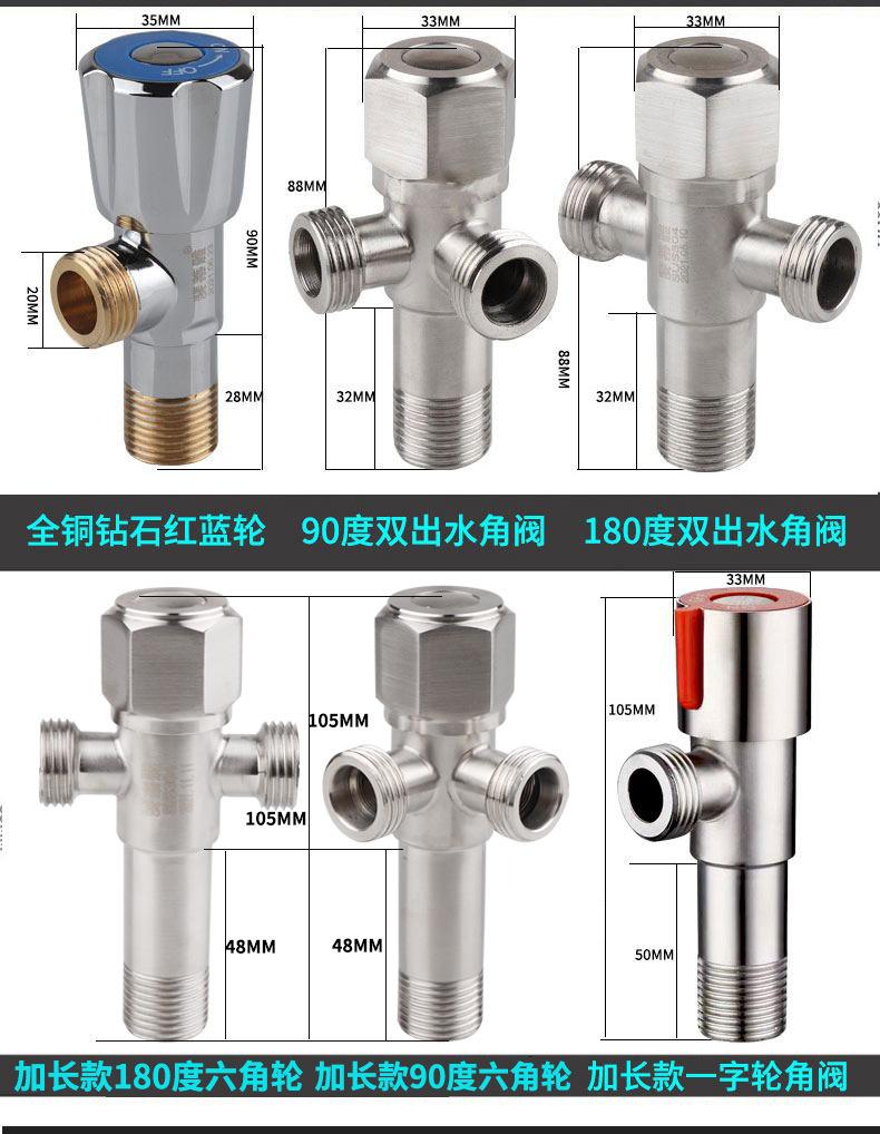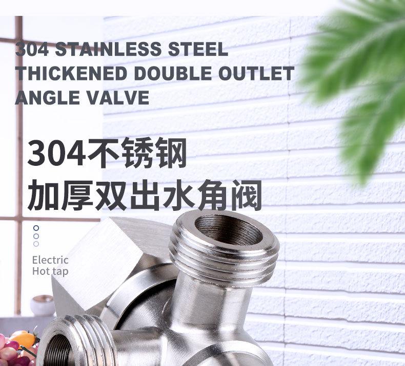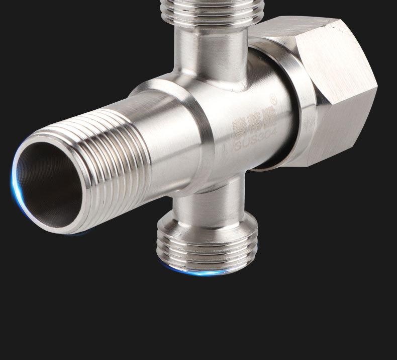 Nueva válvula de ángulo triple de una entrada y dos salidas de acero inoxidable 304 de doble salida engrosada universal para frío y caliente con interruptor