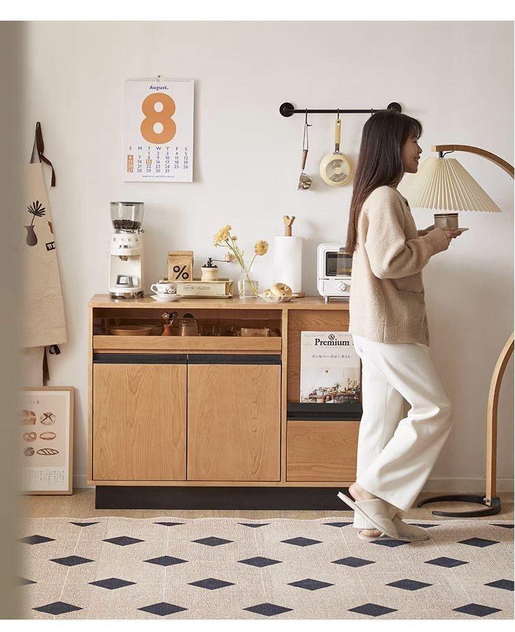 Aparador nórdico de madera maciza para el hogar, pequeño apartamento, armario de almacenamiento multifuncional, armario de almacenamiento simple para sala de estar, madera de cerezo