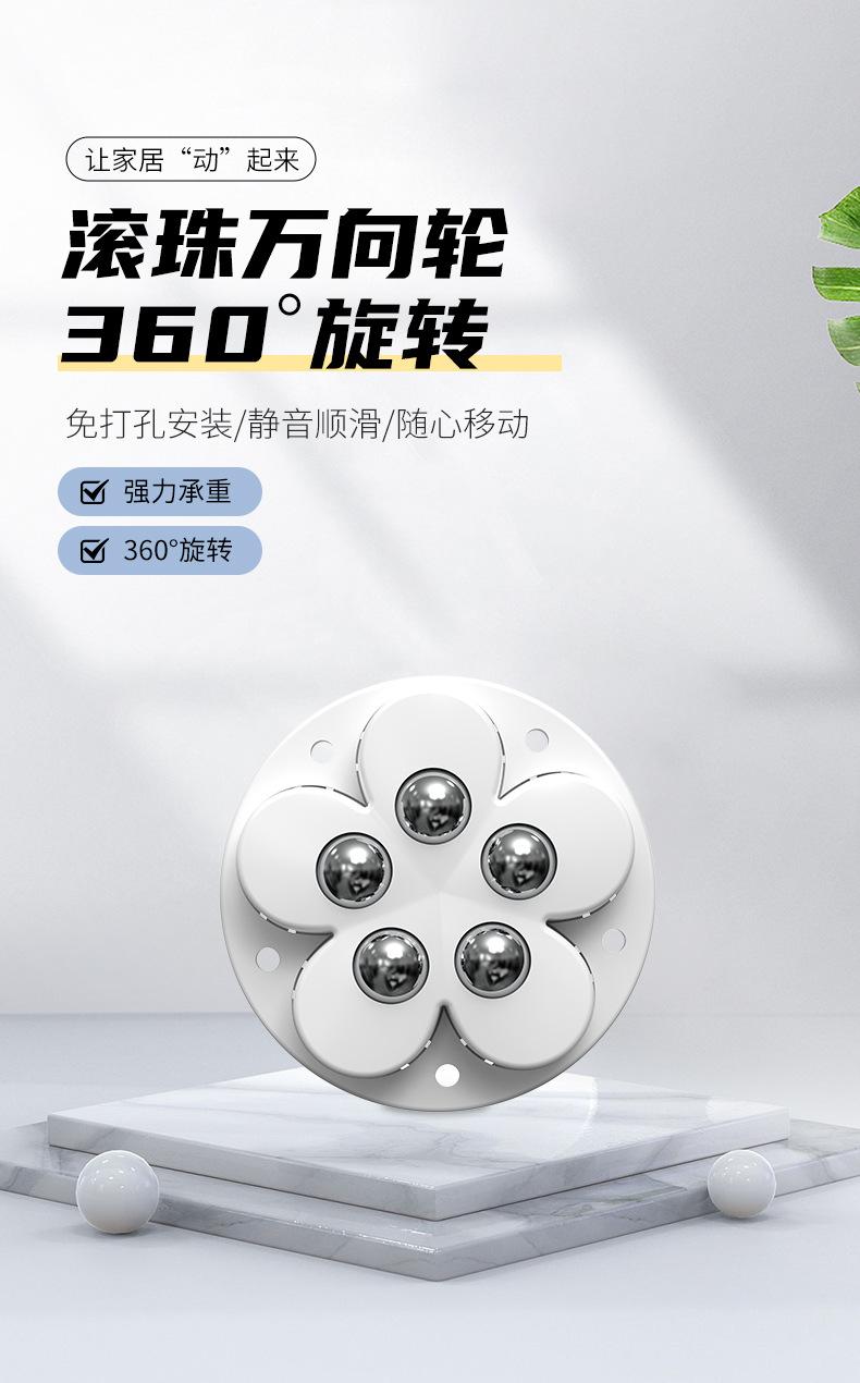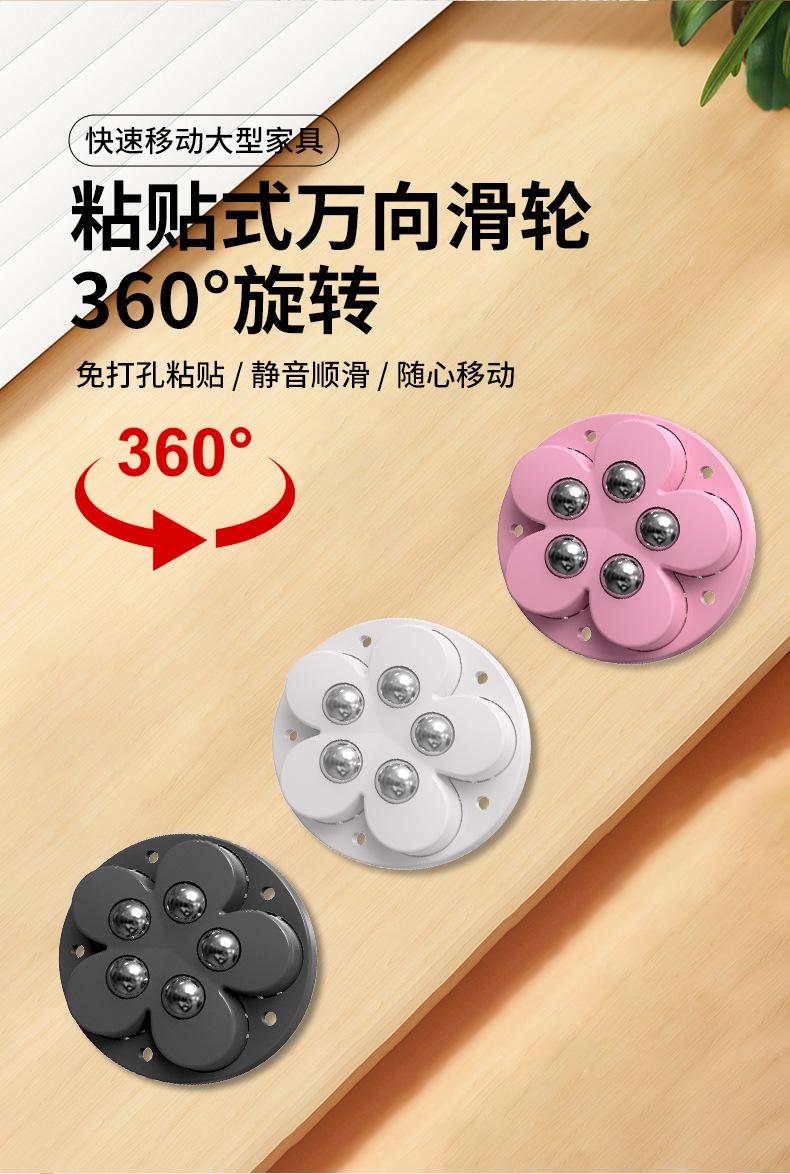 Nombre del producto: Rueda universal en forma de flor con herramienta de movimiento adhesiva de bola